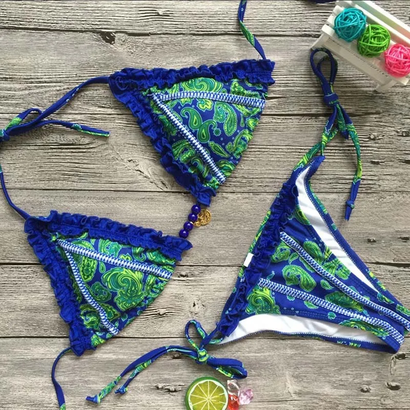 Сексуальный бикини бразильский бандажный пляжный купальный костюм Купальники женские купальники лето пуш-ап купальник с цветочным принтом бикини