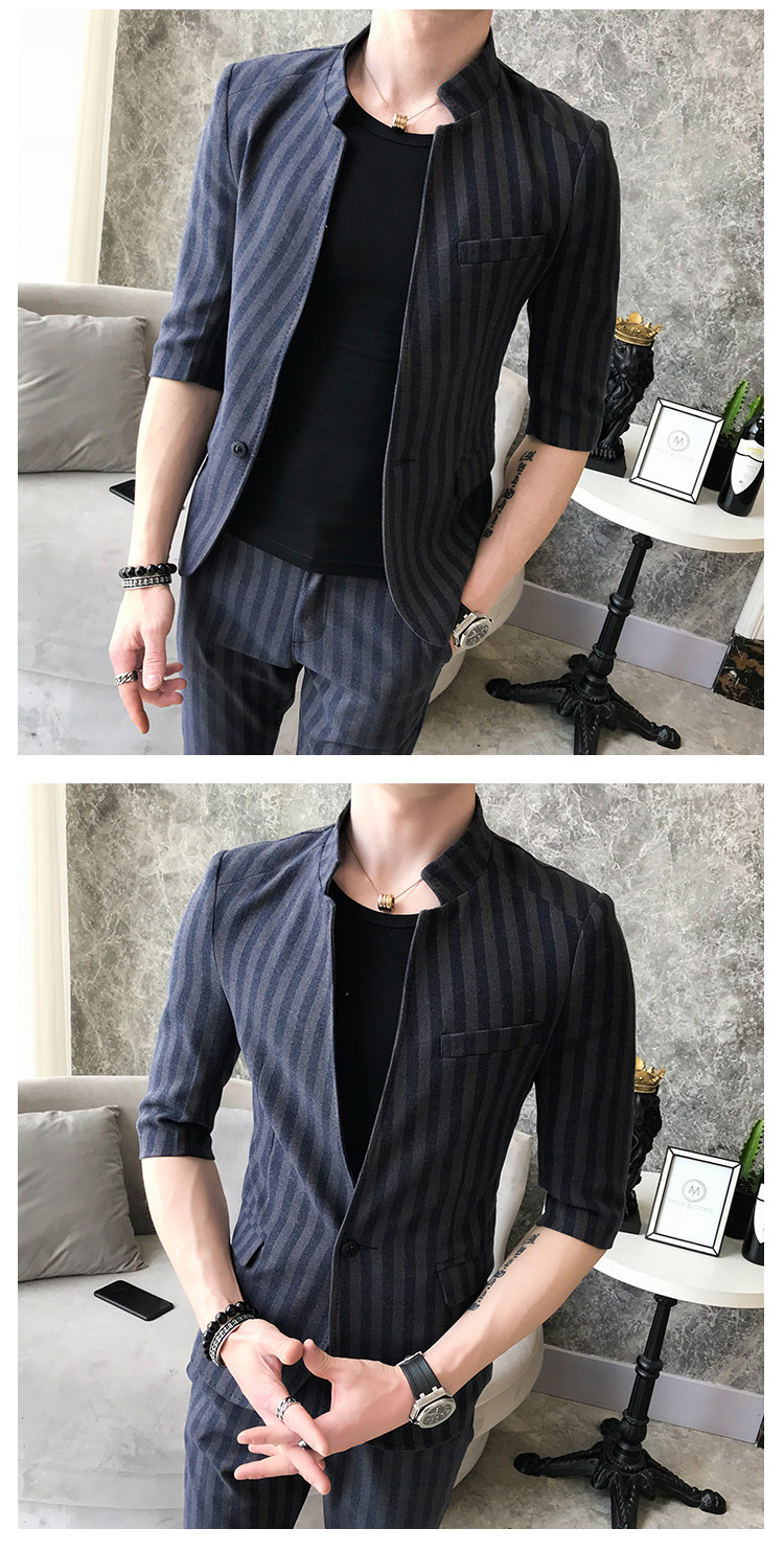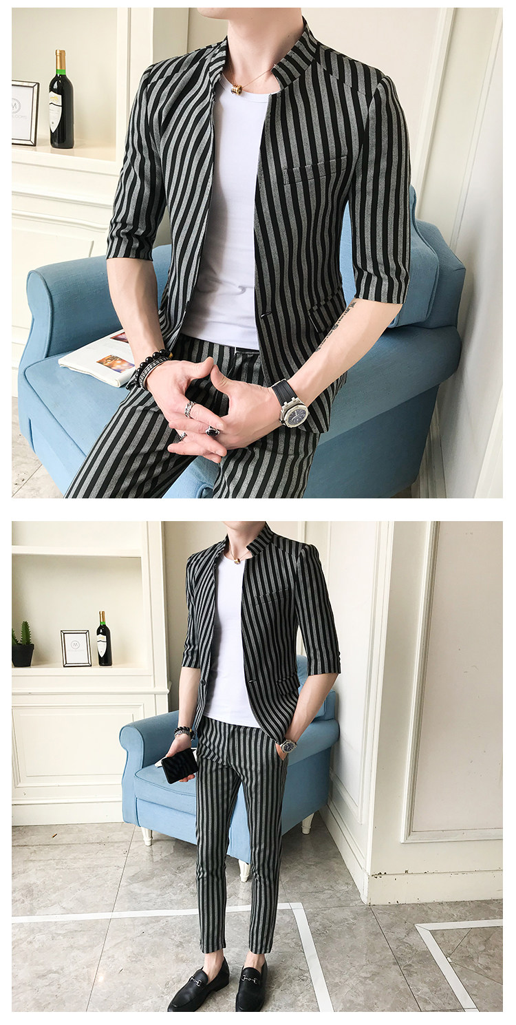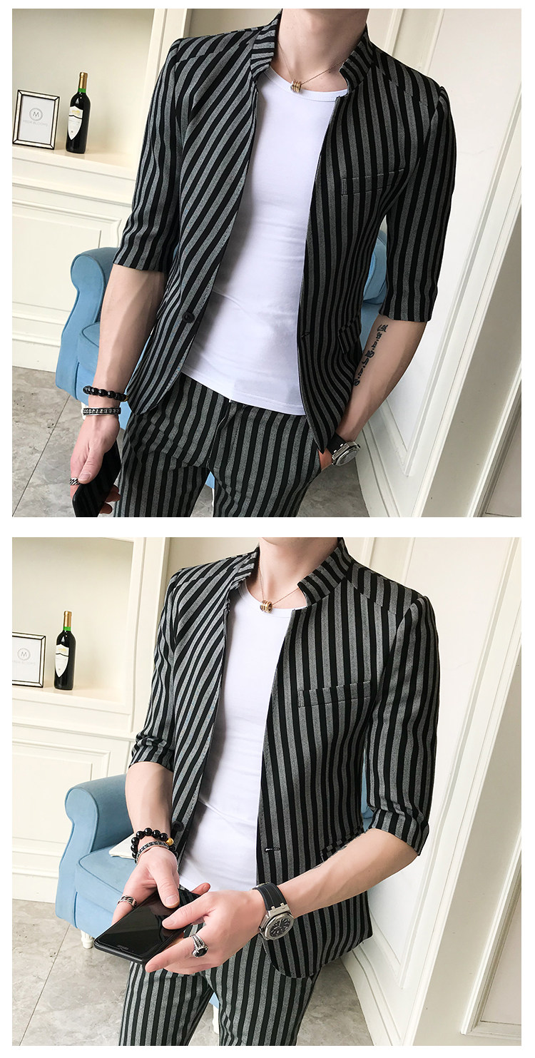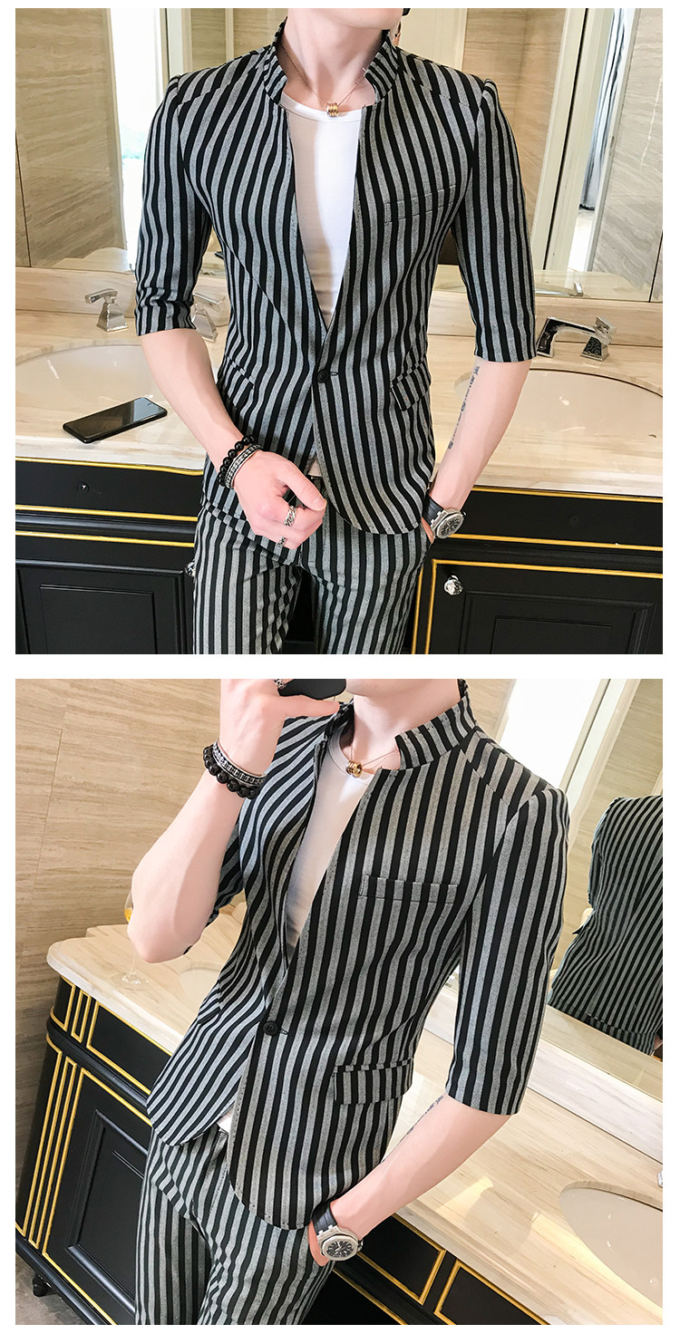 (Топы + брюки) мужской полосатый маленький костюм с рукавом семь точек мужская