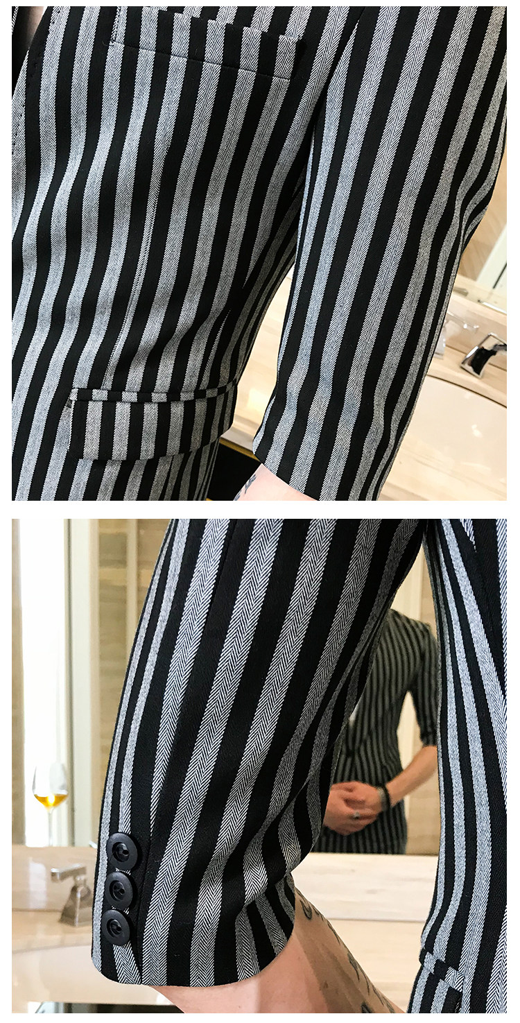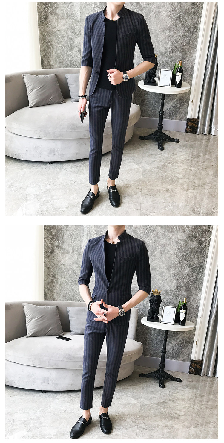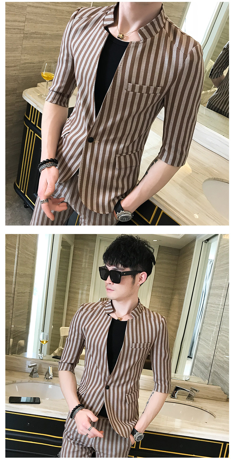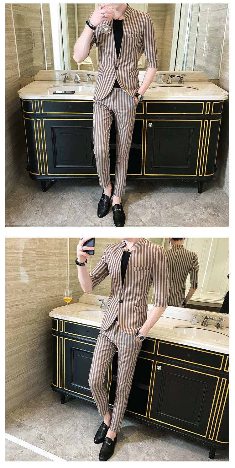 (Топы + брюки) мужской полосатый маленький костюм с рукавом семь точек мужская