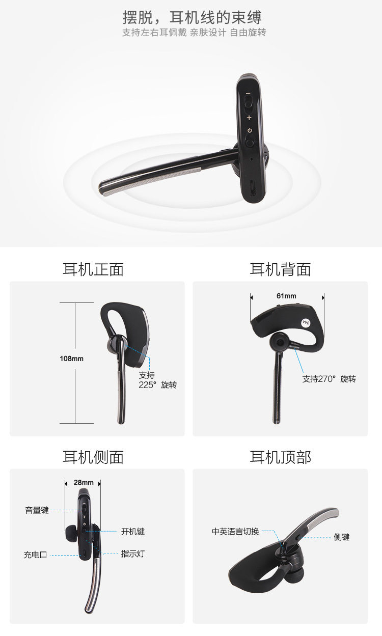 7. Беспроводной наушник и палец PTT радио с радиусом действия около 2-5 м (открытая среда)