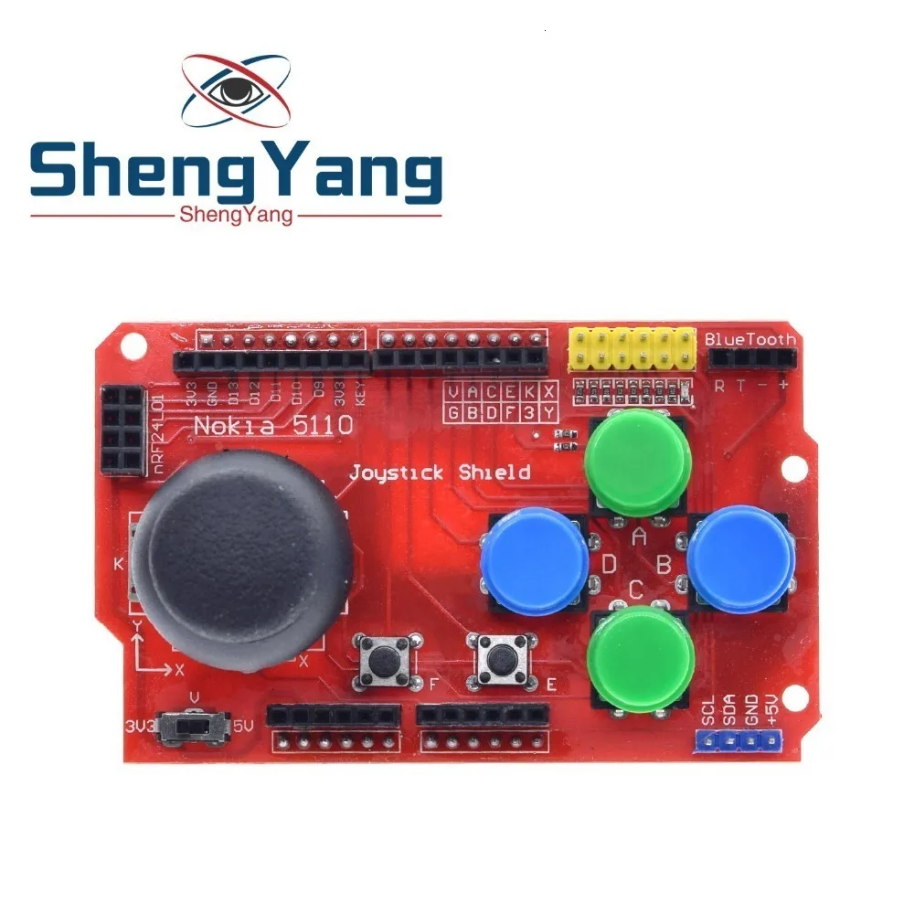 Между тем, щит джойстика с крестиком PS2 джойстик с кнопками, есть четыре круглых кнопки, 2 маленьких кнопки. Обеспечивает джойстик и расширение ввода кнопок. Бортовой переключатели могут переключаться между 3,3 V и 5V, вы можете использовать эту модель для других 3,3 V микроконтроллер платформы, как, например, STM32.
