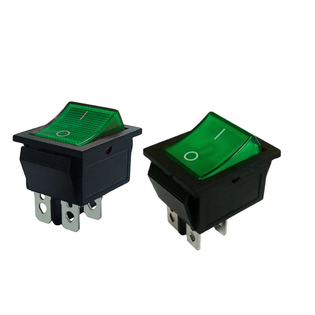 7. 4-клеммный клавишный переключатель-это простой переключатель вкл/выкл, мини-переключатель размера, который встроен в черную и жесткую поверхность с зеленым или красный неоновый светильник.