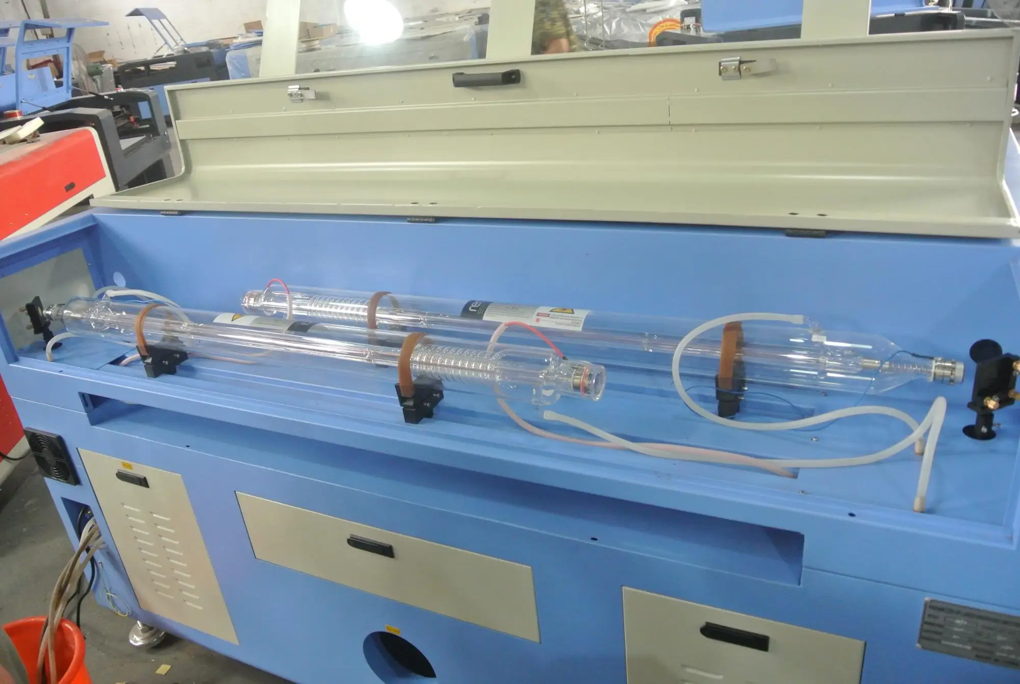 Мы используем лучшие лазерные трубки, такие как Beijing Reci, срок службы длинный,Более 10000 часов.