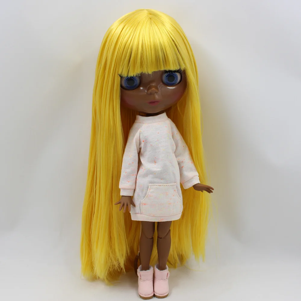 Она получила желтые волосы и очень черную кожу, большие грудные соски. (как на картинке)