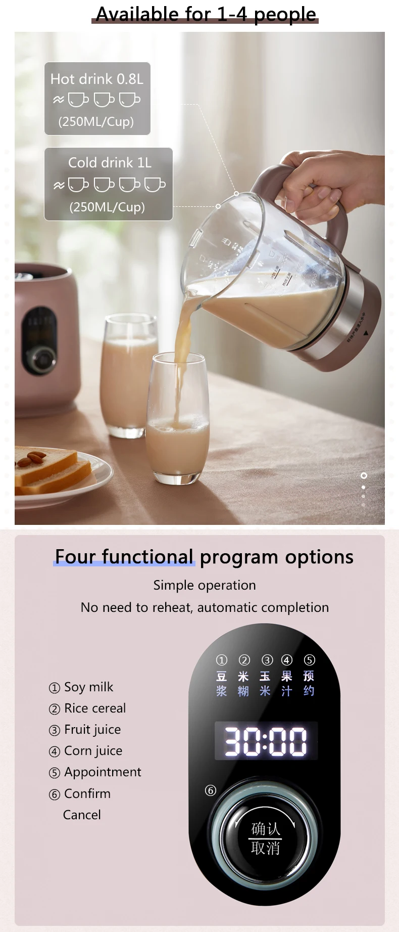 Функция: соевое молоко, рисовые зерна, фруктовый сок, кукурузный сок, назначение