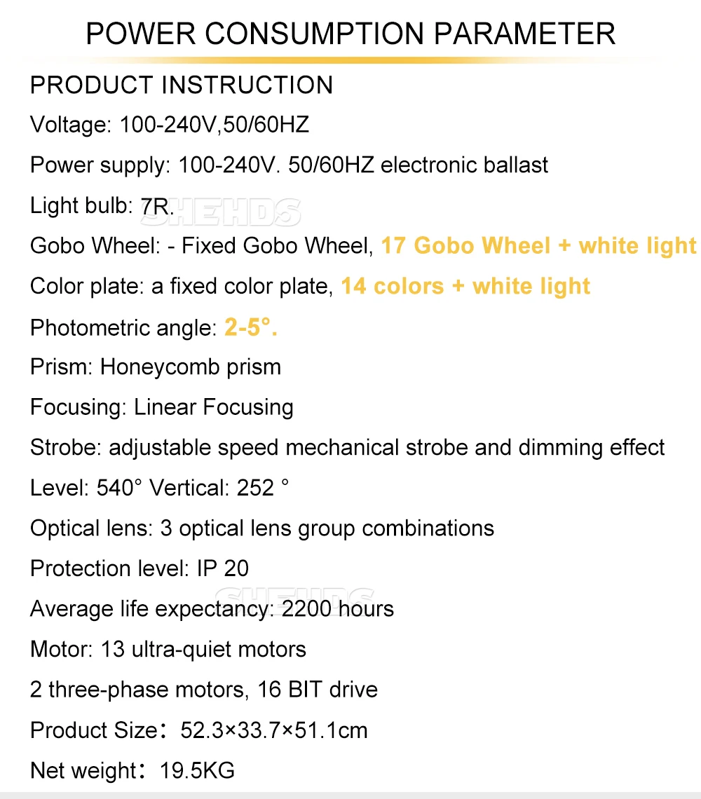 9. Gobos: взаимозаменяемое колесо gobo с 17 фиксированными gobos