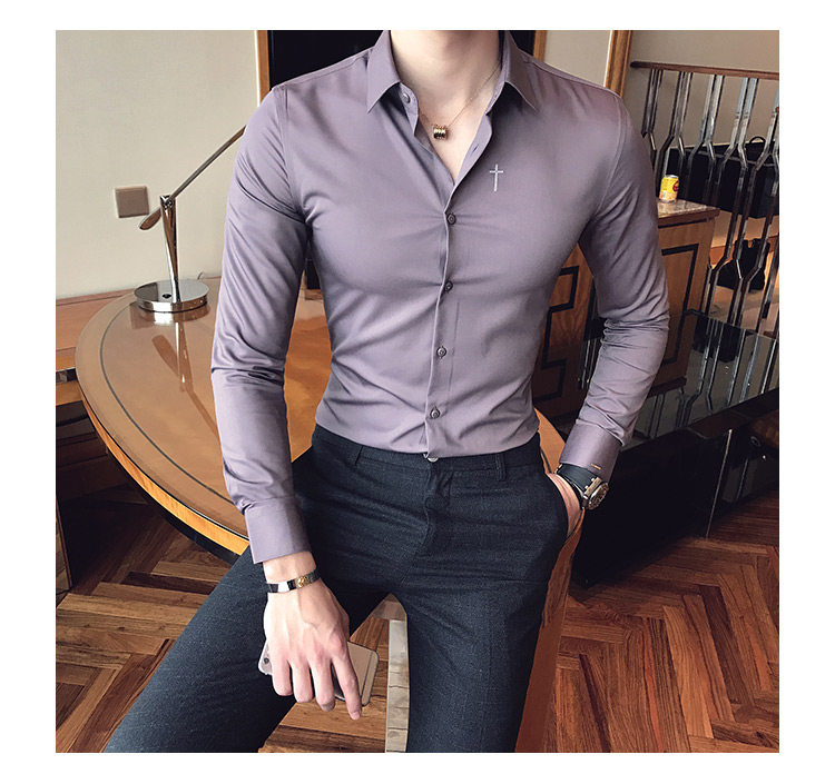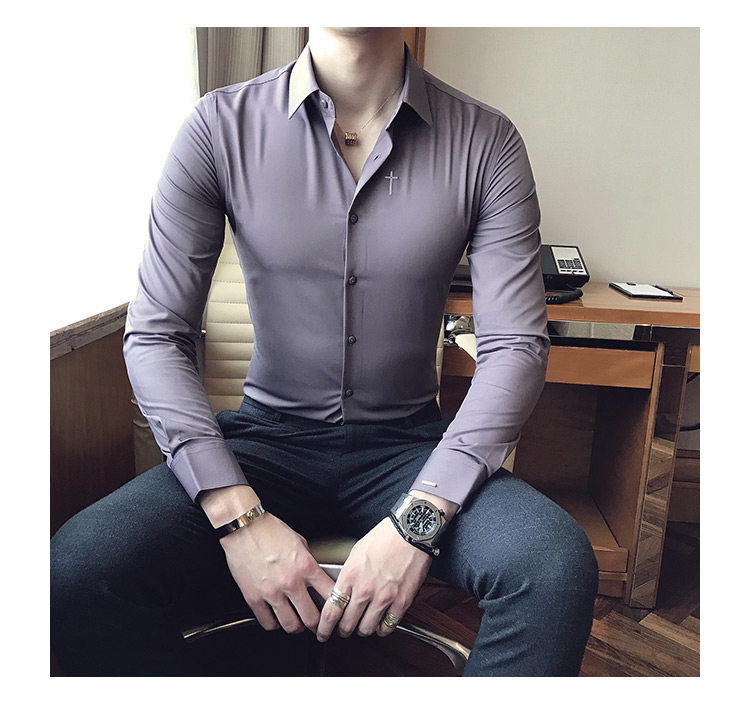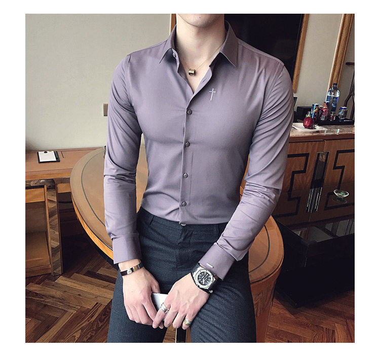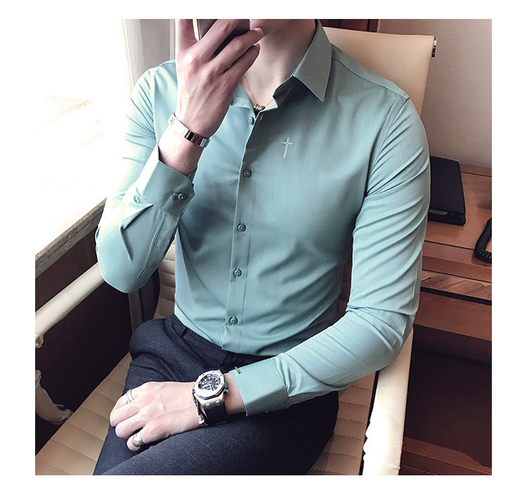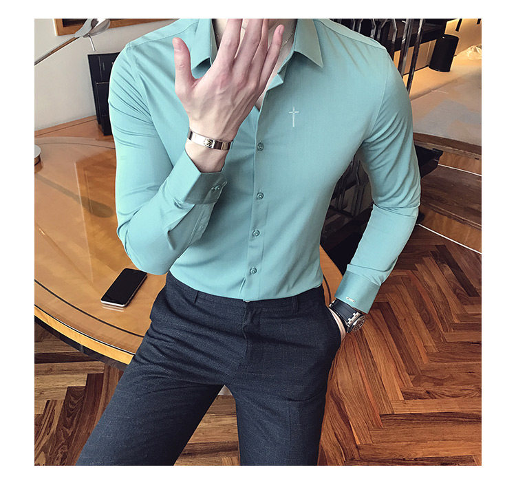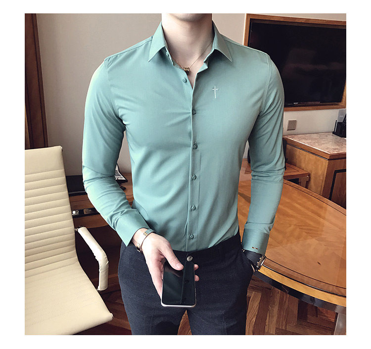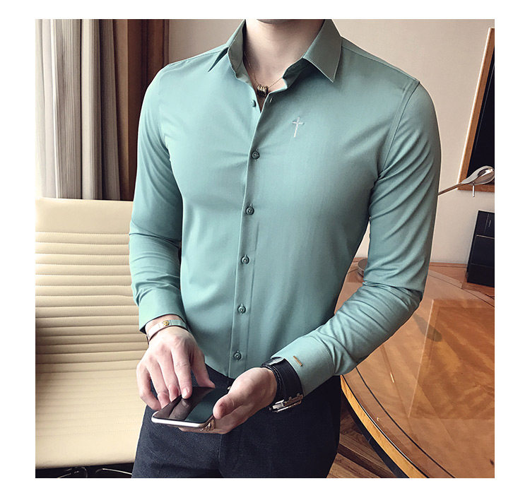 Осень 2020 Новая мужская рубашка стрейч Тонкий с длинным рукавом...