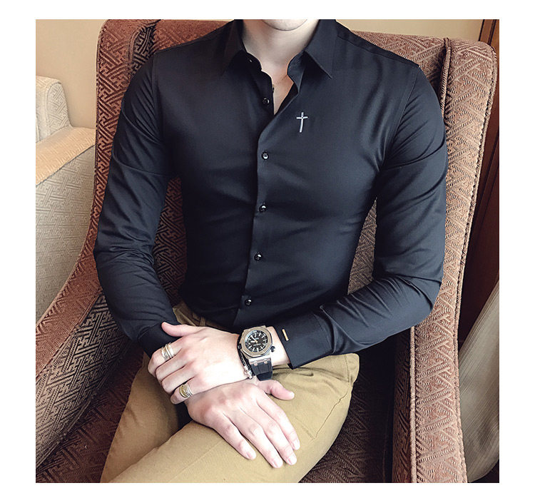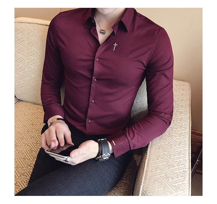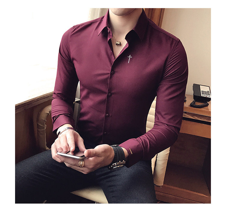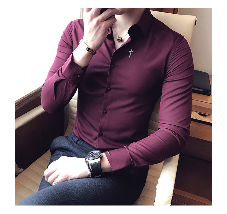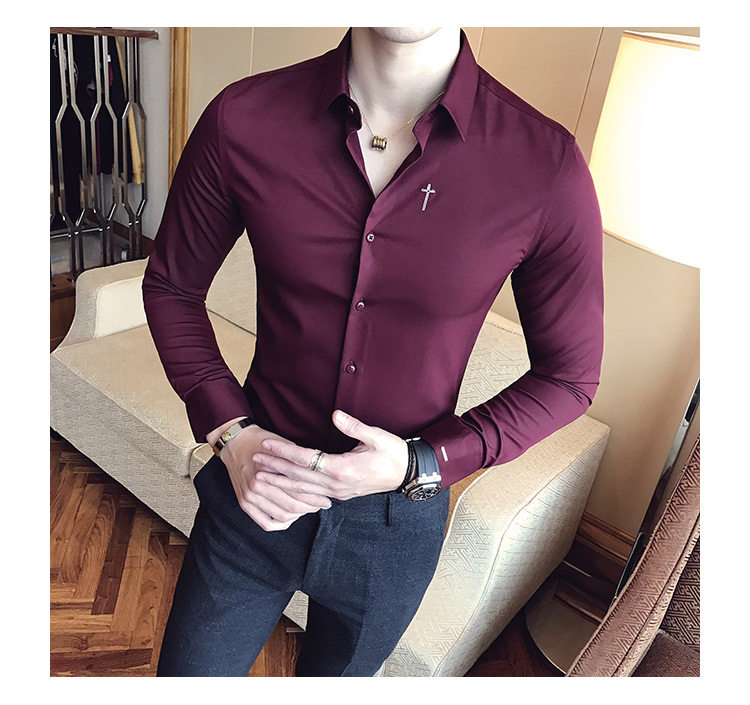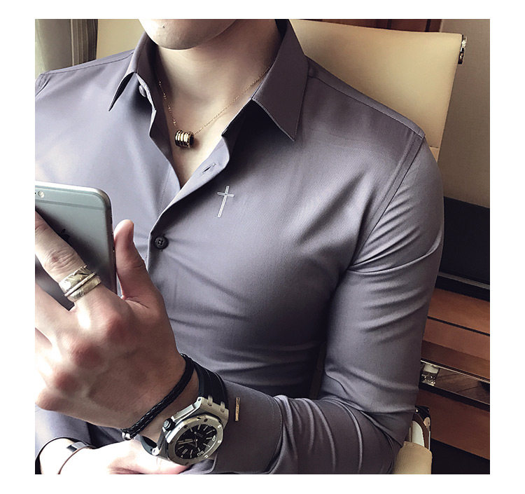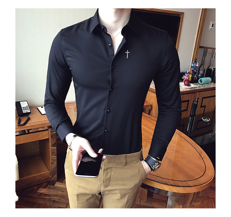 Осень 2020 Новая мужская рубашка стрейч Тонкий с длинным рукавом...