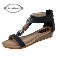De La Chance/2018 женская летняя модная обувь для отдыха; Женские босоножки на танкетке с открытым носком; Женская обувь на танкетке с открытым носкомUS $34,5