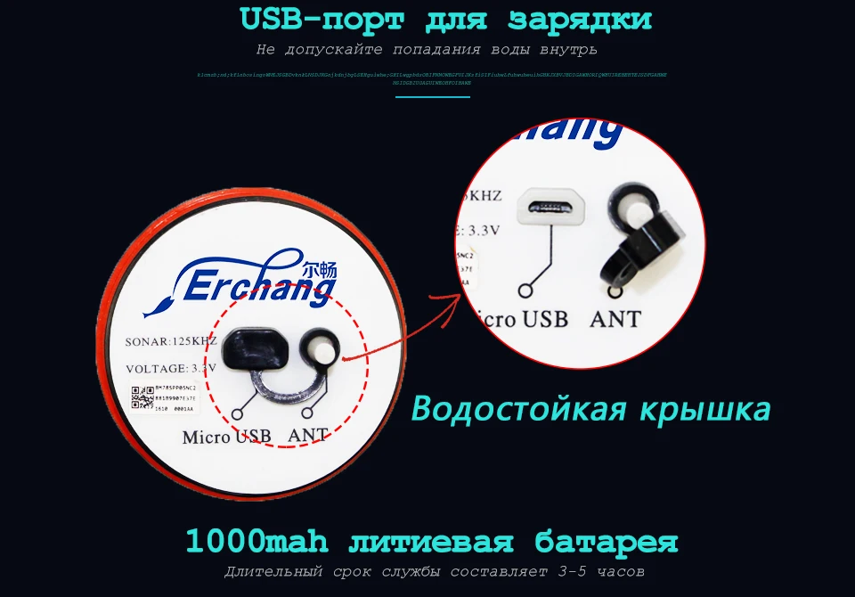 Беспроводной рыболокатор Erchang XA02, глубина 48 м/160 футов, эхолот, сонар для рыбалки на IOS и Android, склад в России