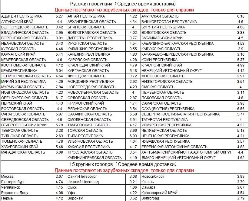 Среднее время доставки российских зарубежных складов в прошлом месяце
