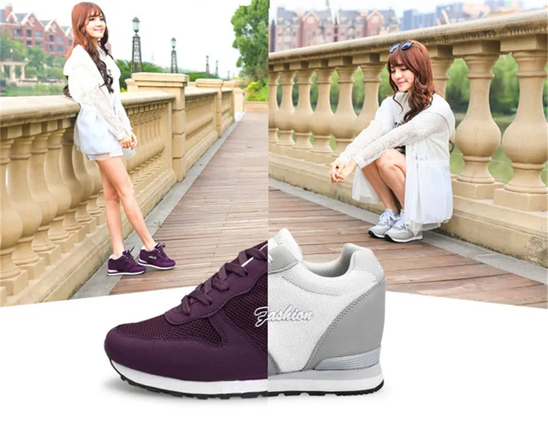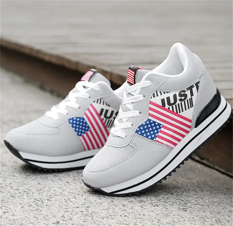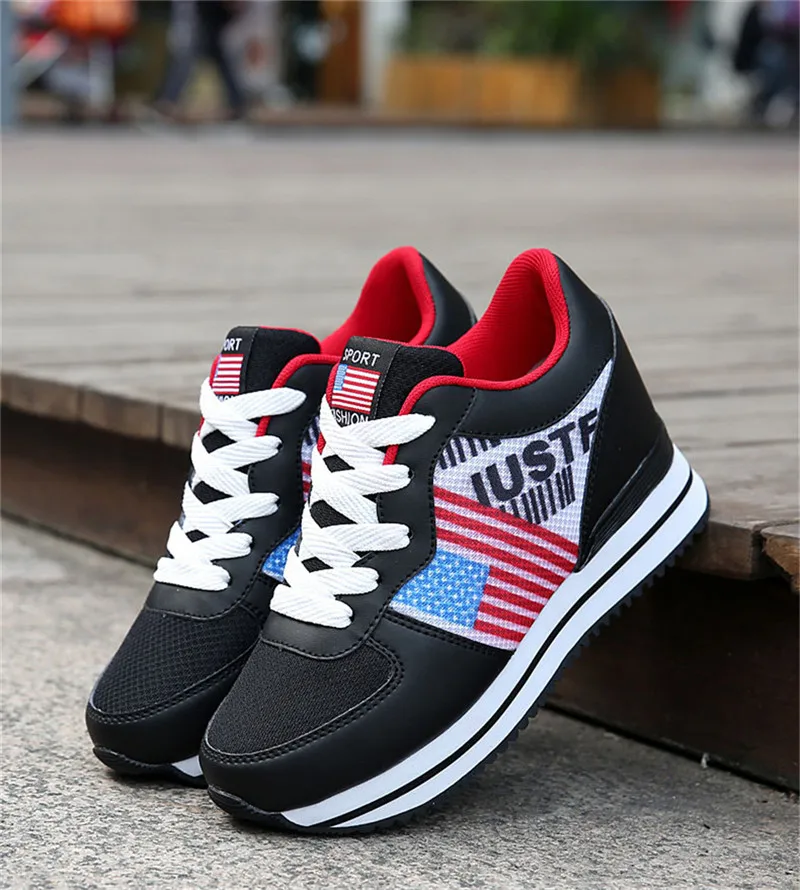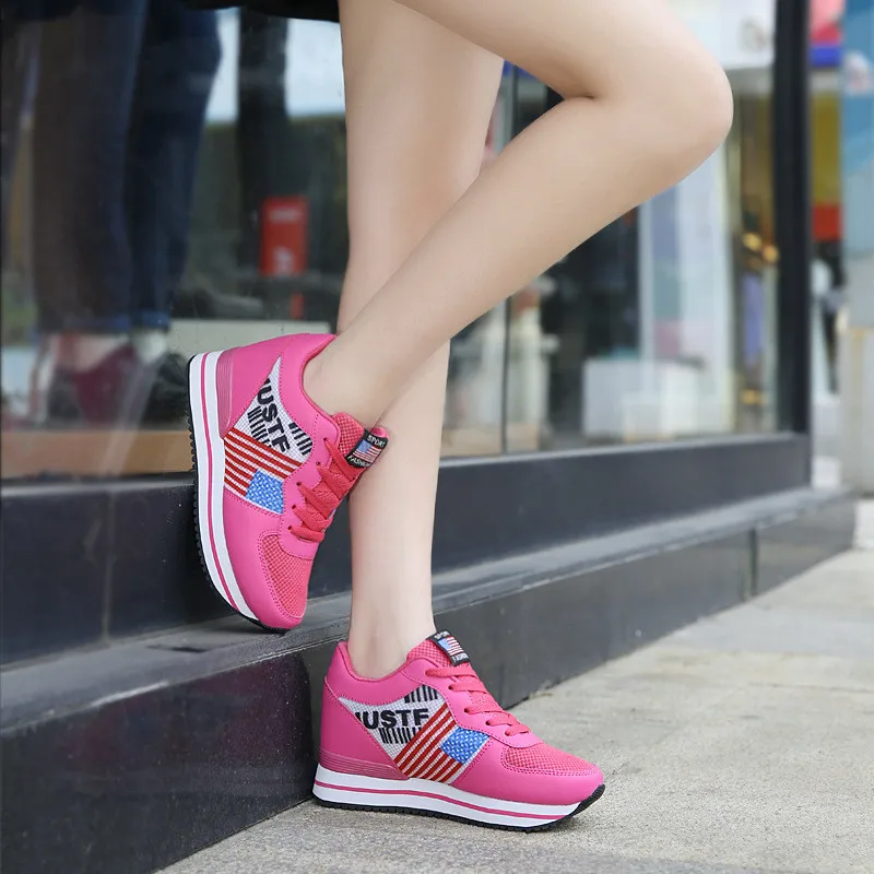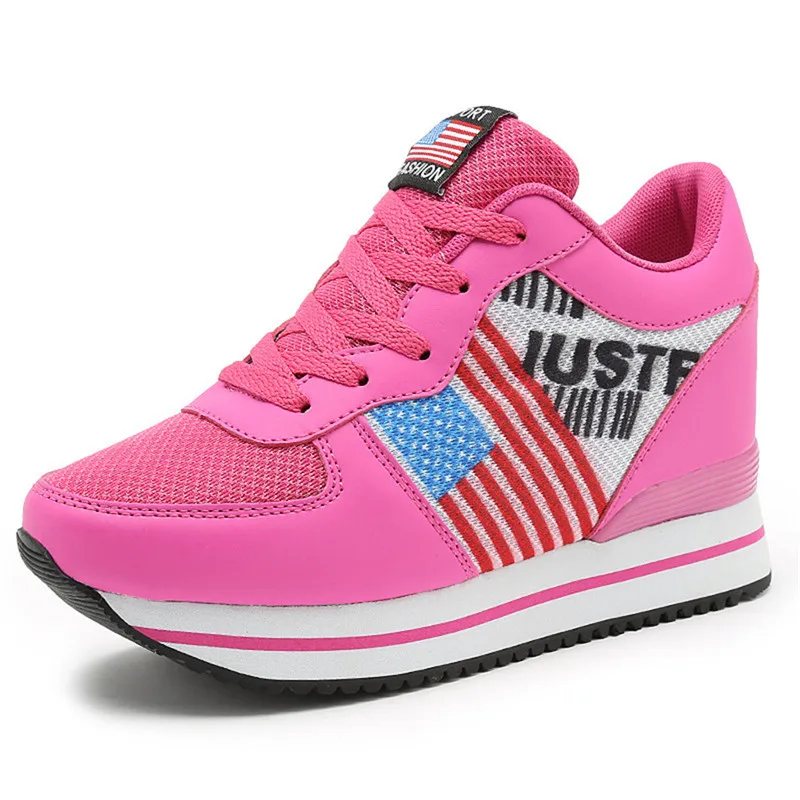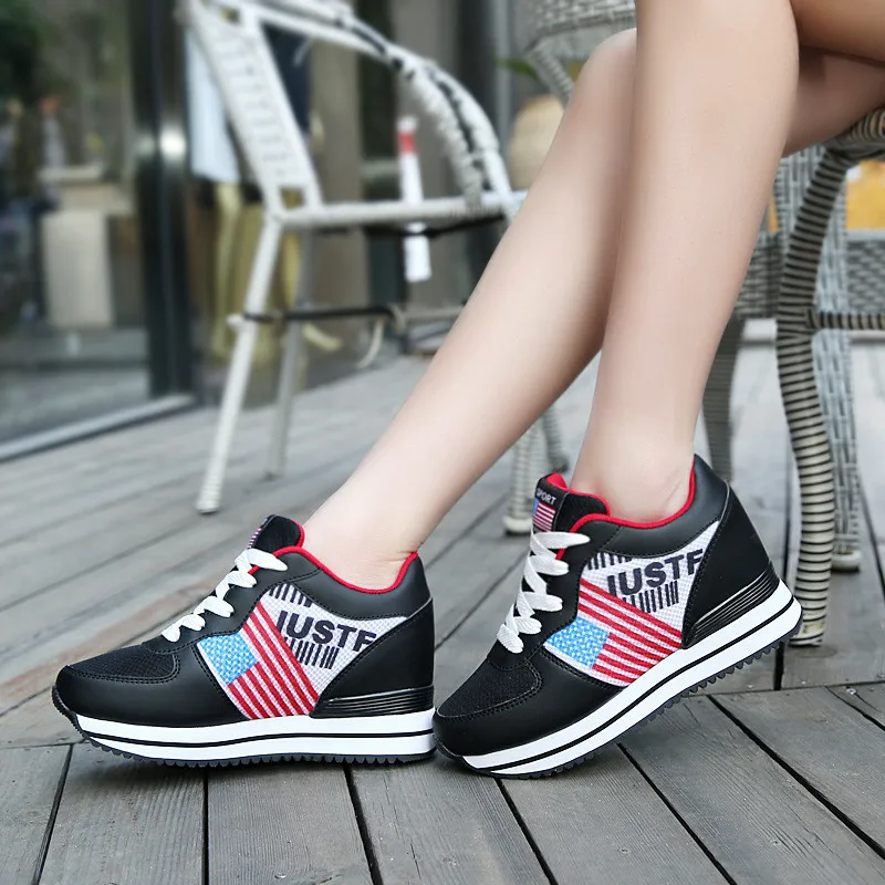Сезон весна-осень; Повседневная женская обувь для танцев, визуально увеличивающая рост; Дышащая легкая женская обувь на платформе со шнуровкой