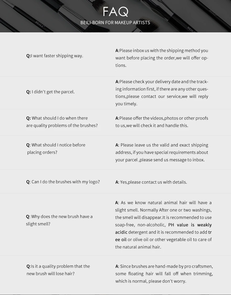 Набор черных кистей для макияжа изготовлен из наших профессиональных кистей. Все, что вам нужно, чтобы получить красивое, естественное нанесение макияжа. Кисти для макияжа BEILI обеспечивают женщинам доступ к высококачественным и высокопроизводительным инструментам. Функциональная этикетка кисти покрыта на каждой ручке для удобства использования. Идеально подходит для любого начинающего визажиста или опытного профессионала.