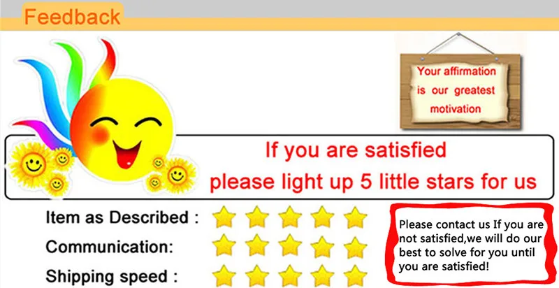 Способ оплаты 1. Существует множество способов оплаты на Aliexpress, таких как Alipay, кредитные карты, банковские переводы в реальном времени, офлайн-платежи (банковские переводы и Western Union). Вы можете выбрать наиболее удобный для Вас способ. Для защиты ваших интересов оплата будет временно задержана компанией Alibaba и не будет передана нам, пока вы не получите заказ и не подтвердите, что остались им довольны. Доставка 1. Когда мы получили информацию о вашем заказе и оплате, мы обычно 2-5 дней для завершения доставки, мы предоставляем информацию для отслеживания логистики. Однако из-за определенных факторов и региональных проблем, которые могут привести к задержке доставки, надеемся на понимание, время доставки обычно составляет 20-60 дней, пожалуйста, будьте терпеливы. 2. Если вам нужен более быстрый способ доставки, вы можете выбрать другие способы, пожалуйста, свяжитесь с нами. 3. Мы не несем ответственности за любые таможенные пошлины или налог на импорт. 4. Заказ будет отправлен в вашу руку транспортной компанией в течение срока доставки, соответствующего списку услуг доставки ниже. Если вы не получили посылка в течение срока доставки, пожалуйста, свяжитесь с нами, и мы ответим Вам в течение 24 часов. Политика Возврата 1. Мы полностью гарантируем наши товары. Все товары находятся в совершенно новом состоянии, если не указано иное в другом месте в описании. 2. Все возвраты-Бракованные или иные-должны быть предварительно разрешены. Пожалуйста, свяжитесь с нами, чтобы получить разрешение и обратный адрес, прежде чем отправить товар обратно. 3. Во всех случаях покупатели оплачивают стоимость доставки за свой счет, чтобы вернуть товары для обмена или возврата денег. Мы будем нести ответственность за почтовые расходы по замене. Свяжитесь с нами 1. Если у вас есть какие-либо вопросы, пожалуйста, свяжитесь с нами, мы ответим на ваши вопросы как можно скорее 2. Мы ответим на ваш вопрос по электронной почте, пожалуйста, проверьте ваш адрес электронной почты для получения ответов. Отзывы 1. Пожалуйста, напишите мне, прежде чем оставлять отзывы, Если вы недовольны своим товаром, чтобы мы могли его обработать. 2. Международные покупатели, пожалуйста, обратите внимание: импортные пошлины, налоги и сборы не включены в цену товара или стоимость доставки.