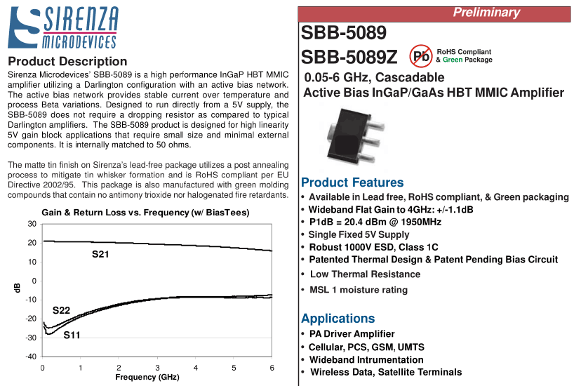 SBB5089 РЧ усилитель тестовые данные: