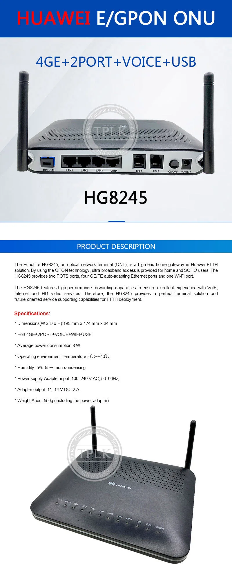 Самая низкая цена HG8245 4GE + 2 голоса + WiFi GPON ONU/ONT Echolife телекоммуникационное Беспроводное сетевое оборудование высокого качества