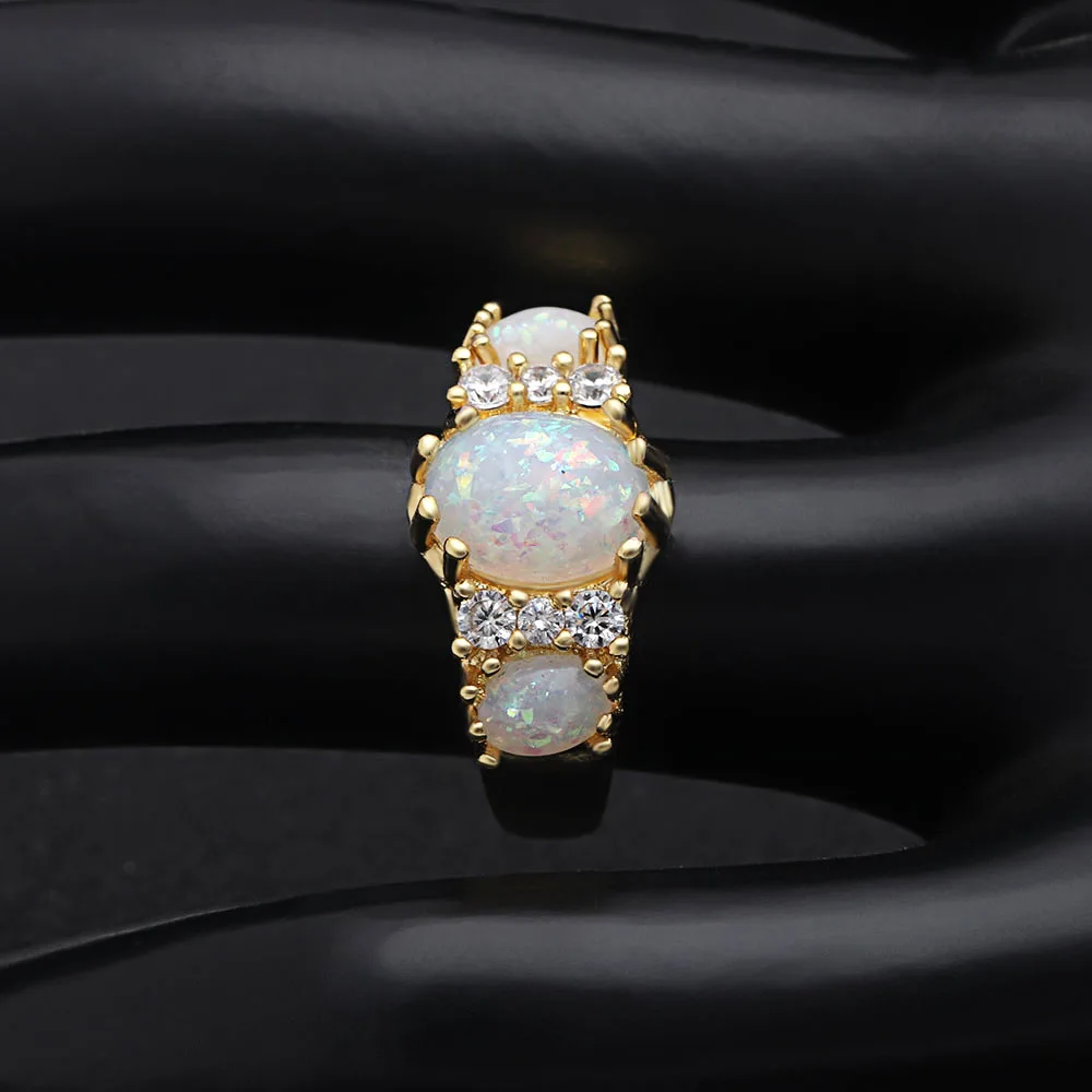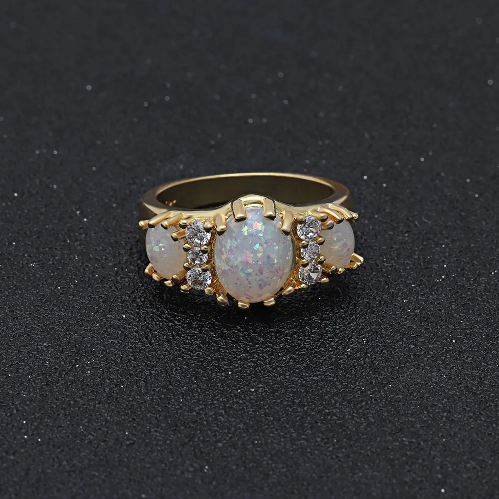 Новое Классическое белое кольцо с огненным опалом, овальное ювелирное изделие золотого цвета, Модные CZ Обручальные кольца для вечеринки, коктейльное кольцо для женщин, аксессуары
