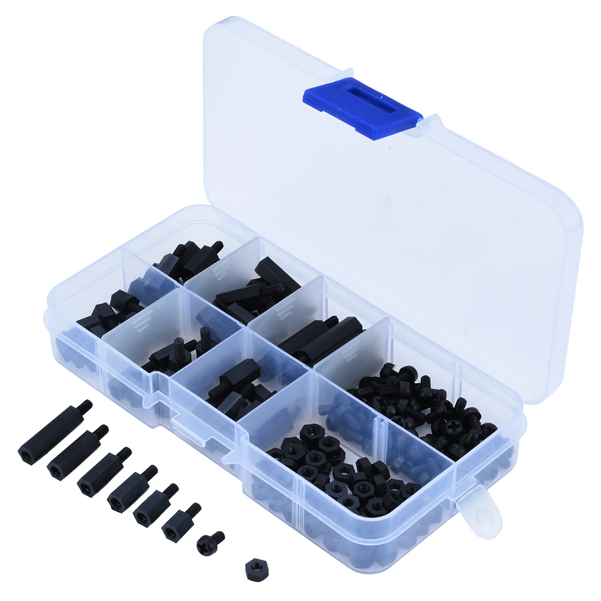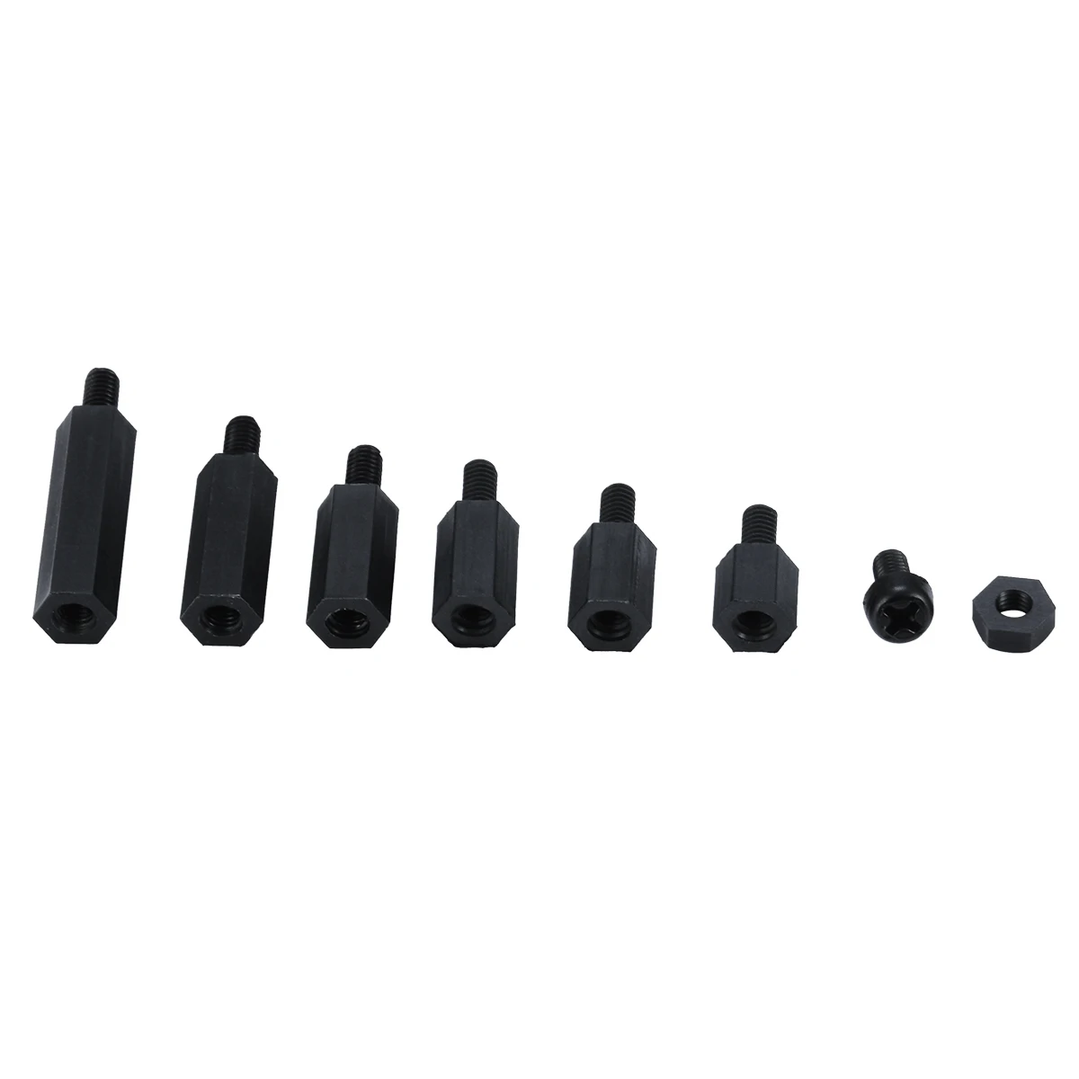 В наличии 6 типов резьбовых разъемов M3, каждый тип 10 шт. и 60 шт. гаек, 60 шт. винтов.