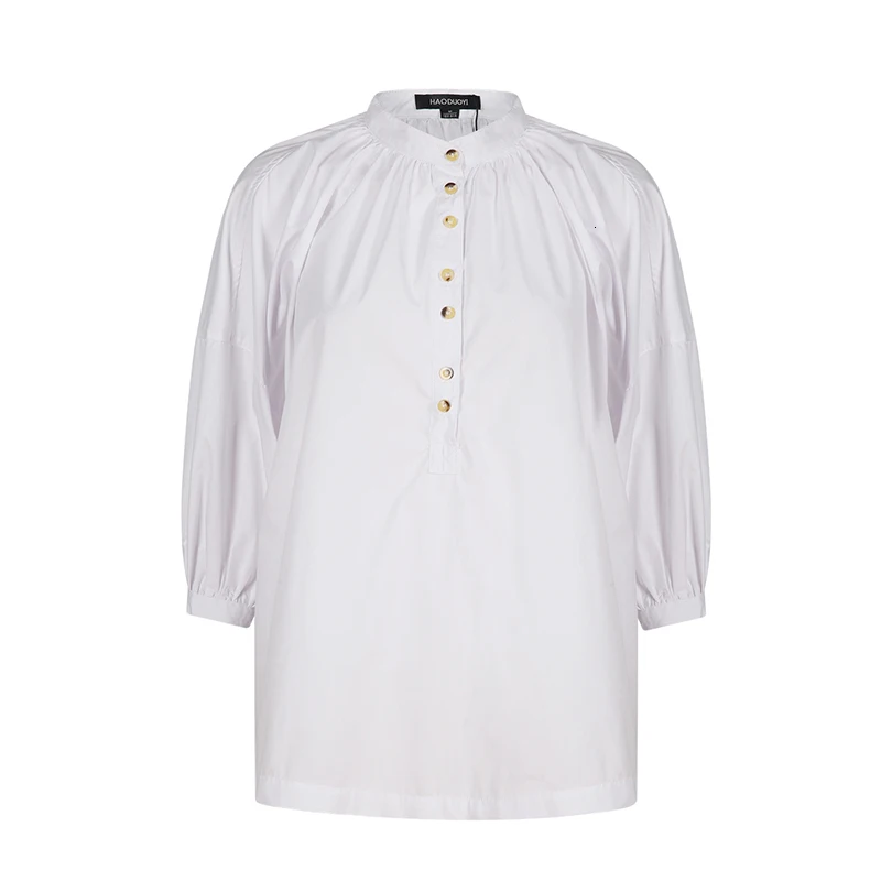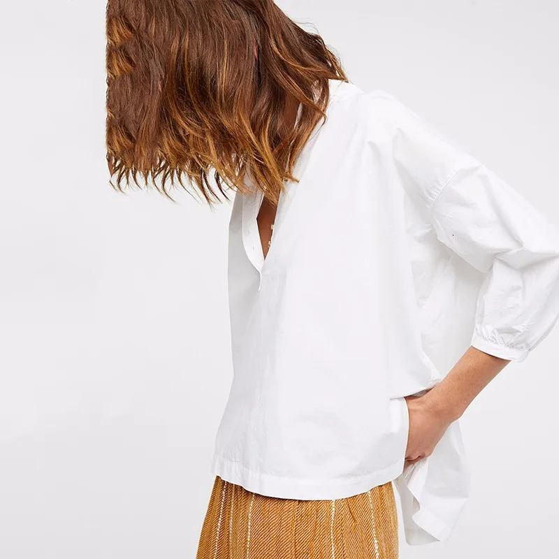 Женские хлопковые блузки VONDA белые повседневные свободные с круглым вырезом