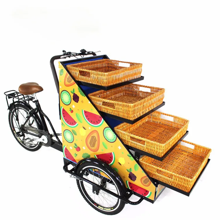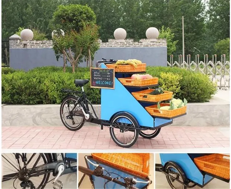 Бесплатная доставка по морю CNF электрическая версия 3 колеса овощи фрукты розничная продажа велосипед с корзинами трехколесный велосипед еда грузовик мини пикап Наш розничный велосипед также идеально подходит для производства и рекламы продуктов! Либо как Мобильная продукция Горячие точки, или используется в качестве велосипеда для доставки продуктов, трехколесный фруктовый велосипед-отличный способ создать уникальный опыт производства. |