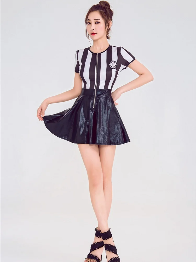Рефери черлидер костюмы сексуальные Футбольные Девушки Черлидинг униформа черно-белая полоса развеселить Футбол ребенка партии наряд