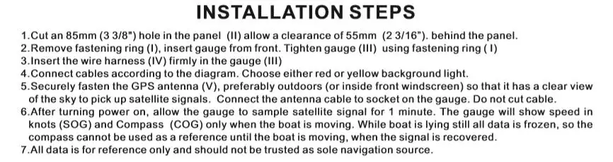 Подключение: красный-аккумулятор (+ 9-32VDC) синий-аккумулятор (-) оранжевый/желтый-подсветка (+ 9-32VDC)