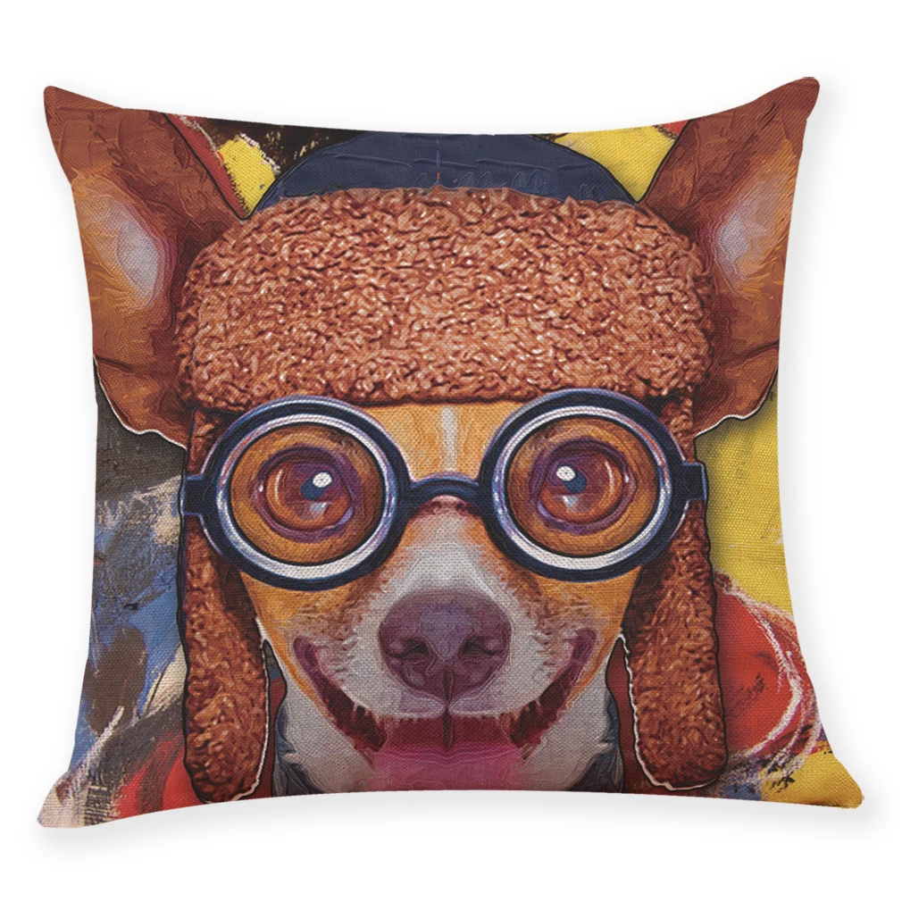 Чехол для подушки из полиэстера и льна с рисунком собаки из мультфильма и солнцезащитных очков, односторонний держатель для подушки 45x45 см