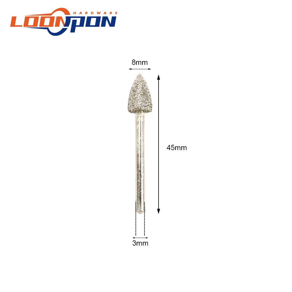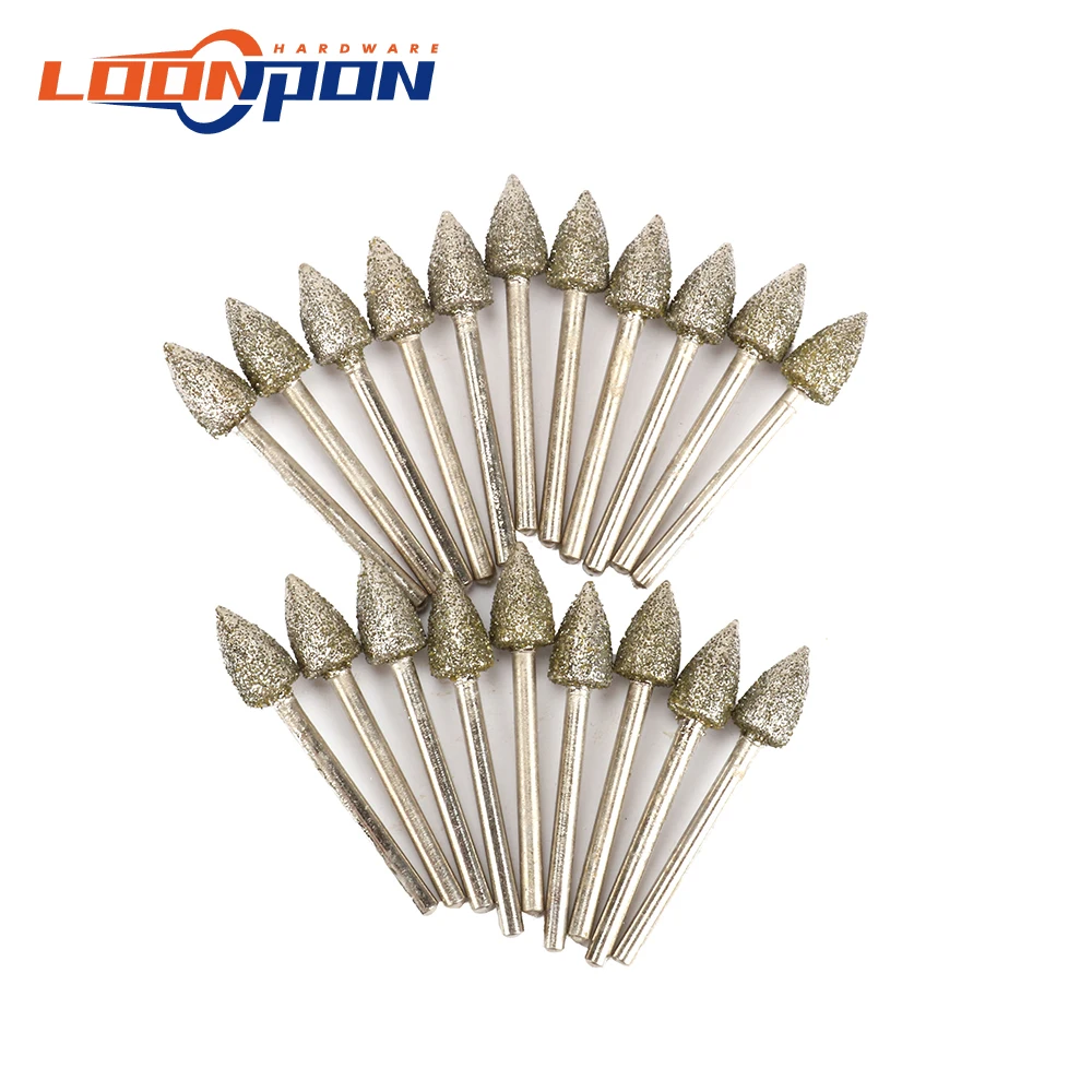 -20 шт., алмазная шлифовальная головка, форма конуса, как показано на фотографии.