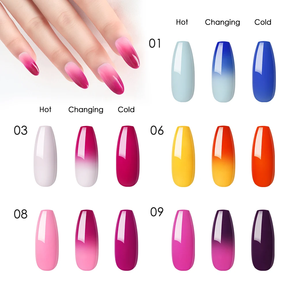 Это Гель-лак с изменением температуры, температура 22 ° цвет будет изменен. Из-за освещения и цвета вашего компьютера фактические цвета могут немного отличаться от изображений.
