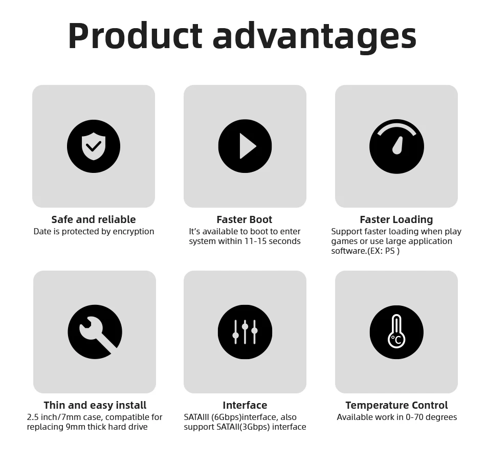 Пожалуйста, обратите внимание:1) для продукта, 2,5 дюйма SSD международный стандарт SATA слот, Поддержка систем Windows XP, DOS, Linux, Unix и т. д., подходит для настольных компьютеров, ноутбуков, мини-компьютеров, все-в-одном, игры PS4 и другие коммерческие ПК.2) для емкости, Как международный стандарт, поставщики флэш-памяти используют десятичную арифметику: 1 Гб = 1000 Мб рассчитан, операционная система использует бинарную арифметику: 1 Гб = 1024 МБ; Реальная емкость будет: емкость x 0,93, поэтому есть некоторые различия между емкостью дисплея и номинальной емкостью флэш-памяти. EX: 120 ГБ = 120*0,93 = 112 ГБ3) для скорости, Тест скорости показан только для справки, скорость SSD будет зависеть от многих факторов, таких как тип интерфейса, уровень компьютерного оборудования, версия программного обеспечения, компьютерная система и Тестовая система. Скорость будет ниже, чем должна быть, если вы Подключитесь к интерфейсу SATA II (3 ГБ/сек.). (Тестовый стандарт: слот SATAIII (6 ГБ/сек.), пустой SSD, Microsoft Windows 7/8/10/XP, CrystalDisk Mark 6,0*64 и т. Д.)4) для обслуживания:3 года гарантии. Было бы очень здорово получить ваши положительные отзывы, если вы удовлетворены нашими товарами, если есть какие-либо проблемы, пожалуйста, свяжитесь с нами, многие проблемы будут решены с нашей помощью.