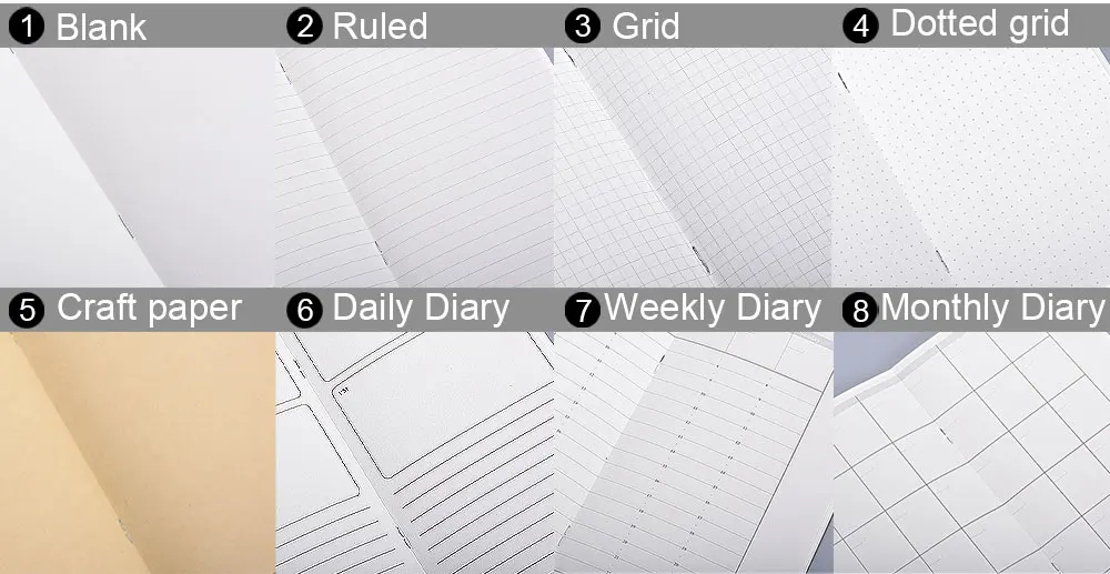Обычно они пустые x1, правила x1, сетка x1. Но у нас есть 8 типов вставок, вы можете связаться с нами, чтобы изменить его или непосредственно оставить сообщение на рамке Примечания при оформлении заказа. Чтобы увидеть больше деталей пополнения ноутбука, нажмите на картинку.