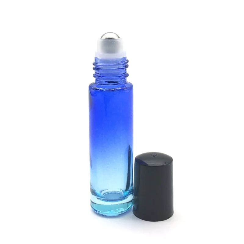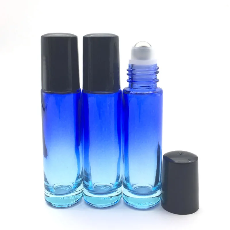 Градиентный цвет синий-прозрачный 10 мл стеклянная бутылка рулон на пустой аромат духи эфирное масло бутылка 10 мл рулон черный пластиковый колпачок бутылка