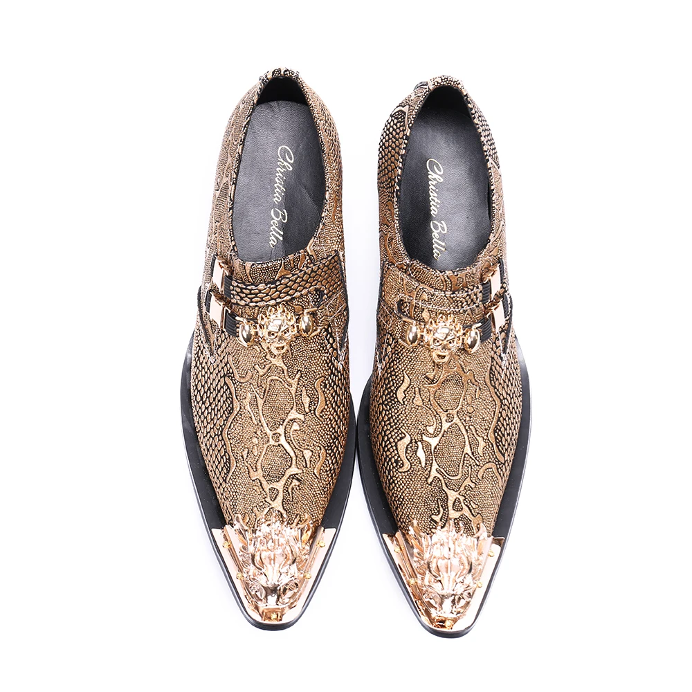 Мужская деловая модельная обувь Christia Bella; Свадебные туфли из натуральной кожи с острым носком; Офисные туфли на высоком каблуке с металлическими носками