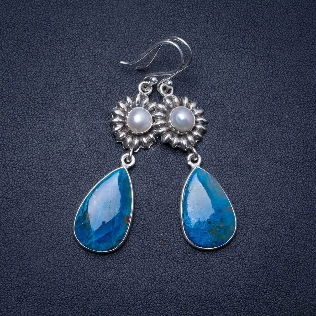 Природный чароит и бива жемчуг ручной работы Уникальные 925 пробы серебряные серьги 2,25 "; X4814