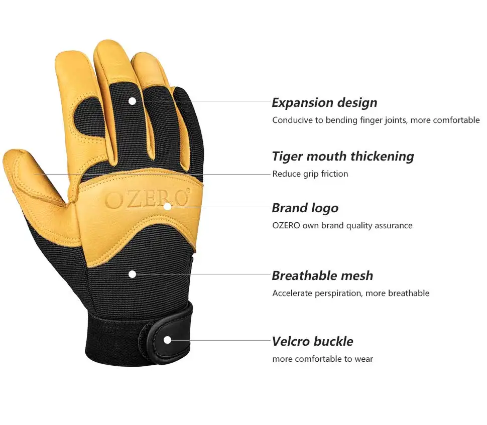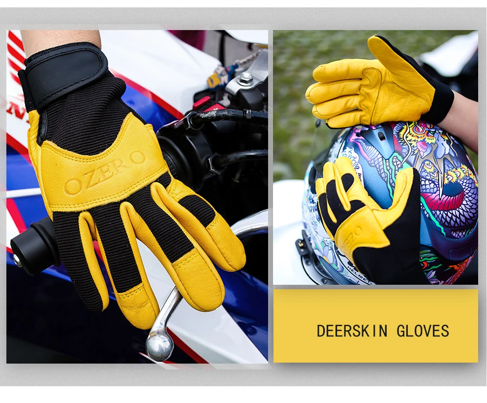 Кожаные Мотоциклетные Перчатки Ozero deerskin, изготовленные из натуральной кожи оленьей кожи и дышащей кожи TR, очень мягкие, тонкие и гладкие, удобные защитные накладки на ладони перчаток, износостойкие, противоскользящая и застежка-липучка на манжетах, герметичность может регулироваться для мотоцикла, езды на велосипеде, езды на велосипеде, гонок, спорта, вождения, работы