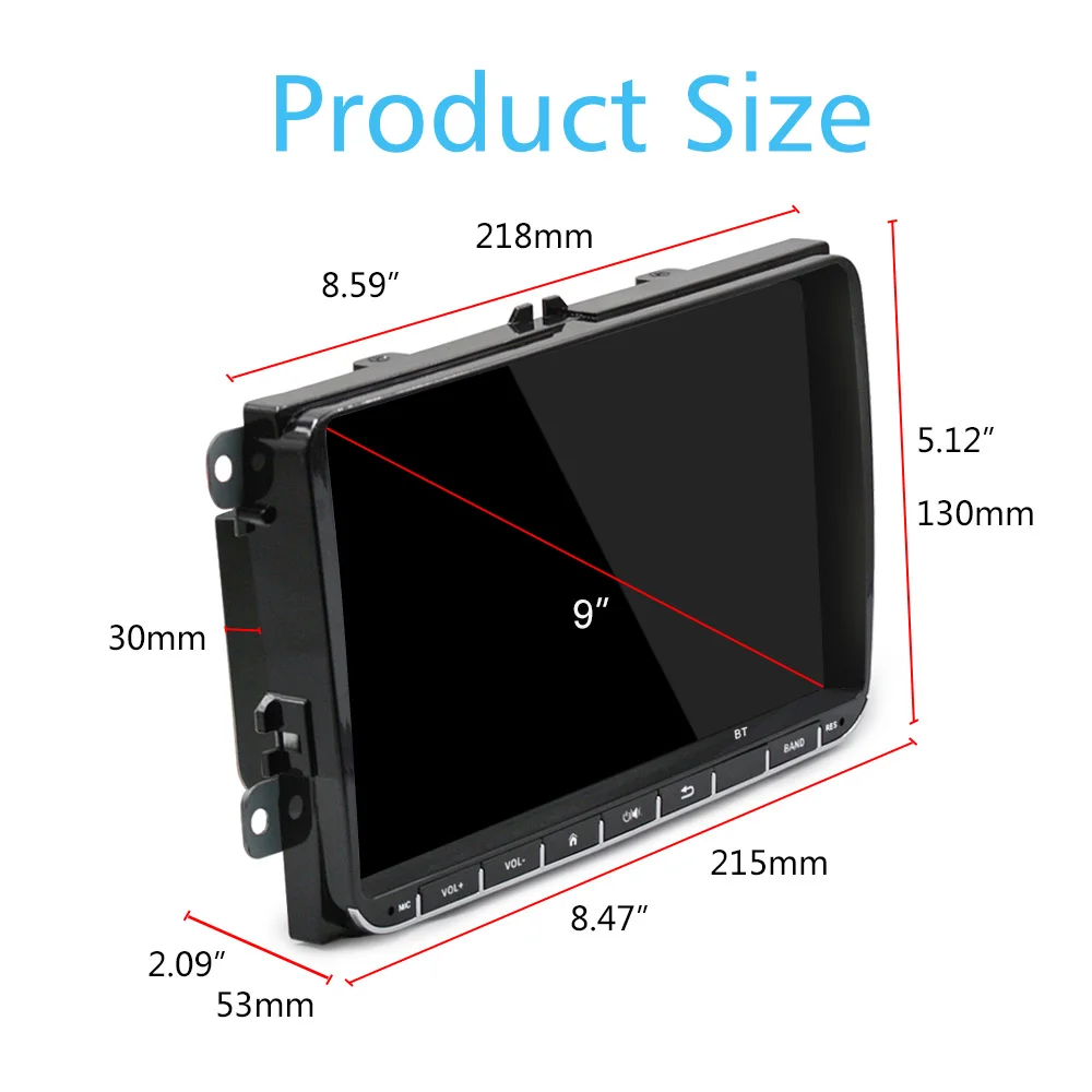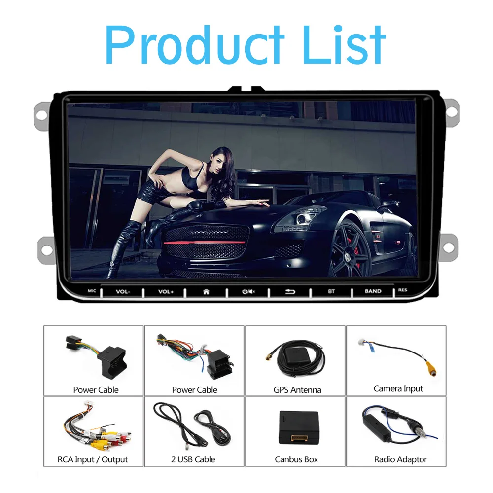 Оригинальный автомобильный радиоприемник в заводском стиле для VW Passat Golf MK5 MK6 Jetta T5 EOS POLO Touran Seat SharanCan-bus в комплекте2 DIN 9 дюймов TFT ёмкостный Тач-Экран.Системы AndroidСупер высокое разрешение с 1024x600 пикселей1,2G 4 ядра Процессор с 1G DDR3Встроенная флеш-память 16 Гб для музыки, навигационной карты, данных и видеоAM/FM радио, автоматическое хранилище памяти/предустановленное сканированиеЗеркальная ссылка для смартфонаВстроенный Bluetooth 4,0 с A2DP/громкой связью/телефонной книгой2 x Задний вход USBВстроенный GPS приемник, совместимый с Waze/Navfree/Google Map и т. д.Задняя Камера ВходНесколько настроек эквалайзераГромкость, Фейдер, баланс, высокие частоты, управление басамиМультимедийный плеер, совместимый со всеми форматами4x45 Вт Выходная мощность2 канальный RCA Выход2-канальный задний видео вход2CH задний RCA вход2 канальный задний аудиовыходВстроенный WI-FIРулевое колесо УправлениеЯзык: японский китайский традиционный китайский упрощенный вьетнамский малайский, датский, немецкий, испанский, филипинский, грамматика Хорватский, итальянский, латышский, датский, польский, португальский, Римский, шведский, финский, вьетнамский, турецкий, болгарский, русский, русский, украский, иврит, урду, Арабская, персидский, бенгальский, финский тайский серебряный бирманский в Корейском стиле