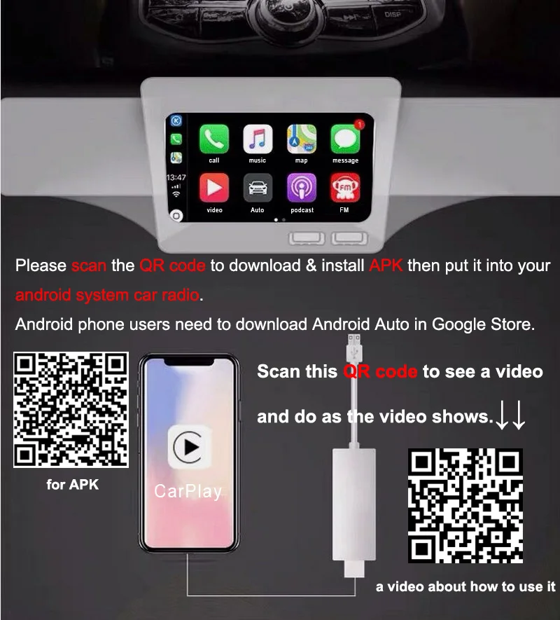 2. Вставьте USB Auto Box с помощью USB DVD-плеера, затем подключите к телефону, используя carplay