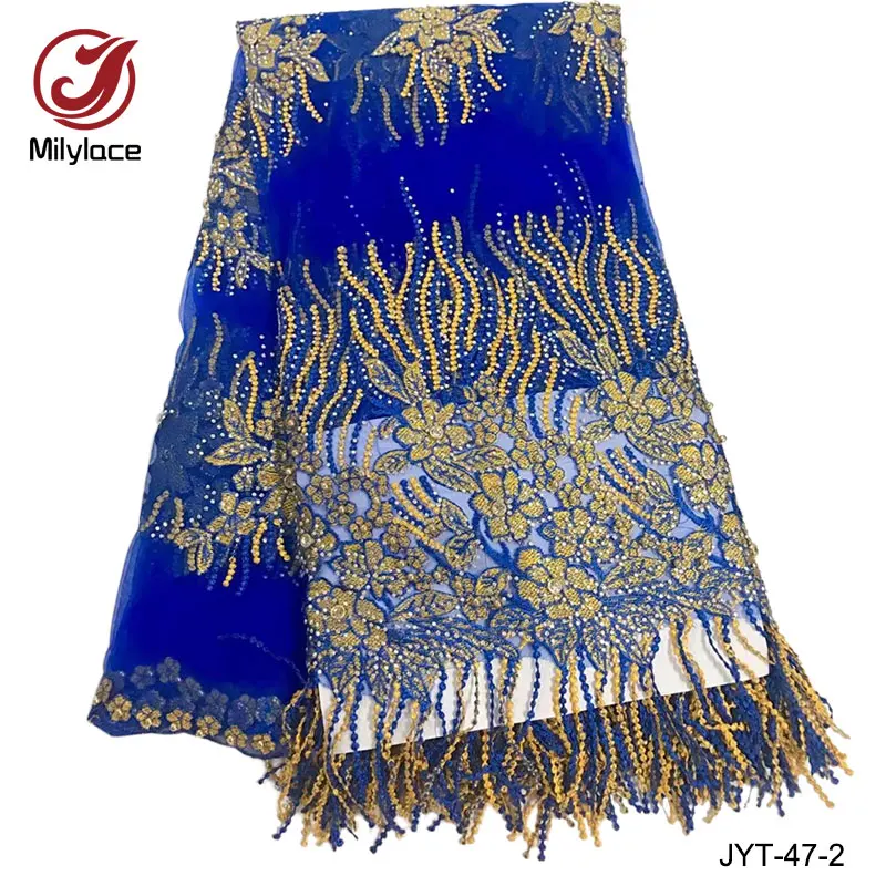 Популярный дизайн skyblue Кружевная Ткань 5 ярдов длинная бисерная африканская