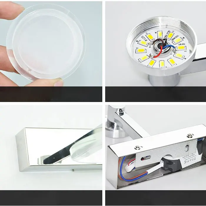 Материалы: алюминий, хрусталь Вход напряжение: AC 110-240V 50/60Hz Светильник источник света: 5 Вт Светодиодный Цветовая температура: теплый белый или дневной белый или холодный белый Способ крепления: настенный Режим управления: настенный выключатель Площадь освещения: 5 м ^ 2 до 10 м ^ 2 Применение: гостиная, столовая, кабинет, спальня, ресторан, лобби, другие
