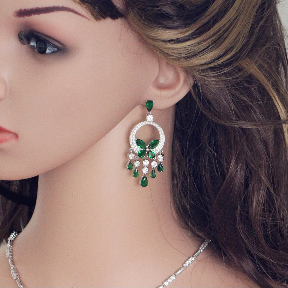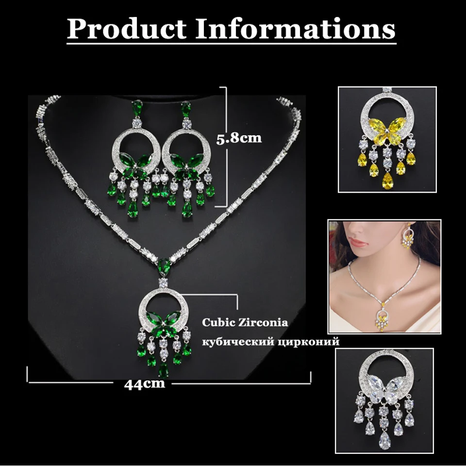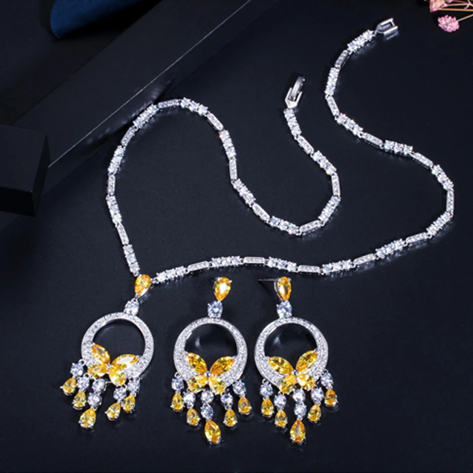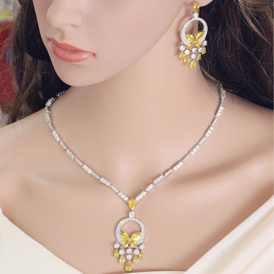 ThreeGraces красивый желтый кубический циркон камень большая длинная бабочка висячие серьги чокер ожерелье наборы для женщин Свадьба T0547