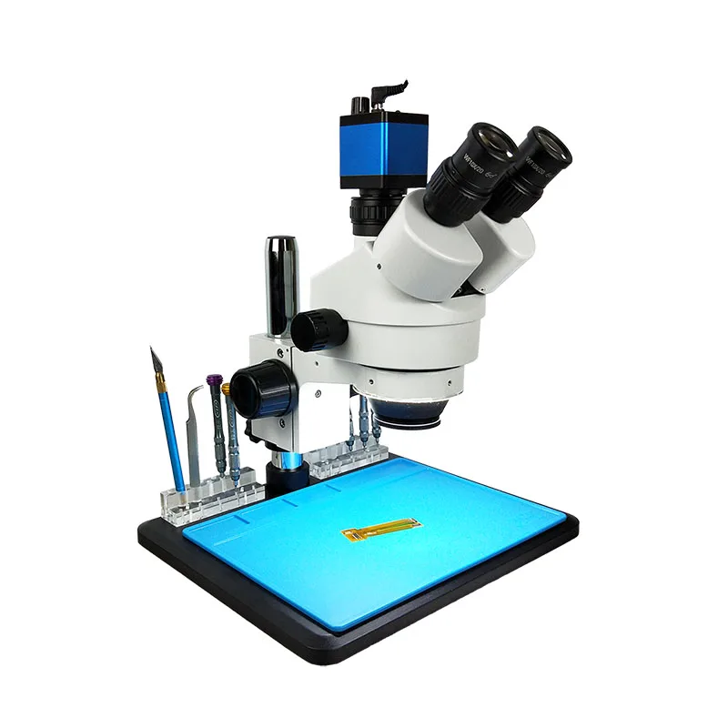 1 большой верстак с коллектором инструментов 1x позиционное кольцо 1x Синий силиконовый коврик 1 пылезащитный чехол; 1x мощность микроскопа; 1 пара WF10X/20 мм окуляра с резиновыми защитные очки. 1x 1.0x вспомогательное оборудование объектива 1x 0.5xВспомогательный объектив