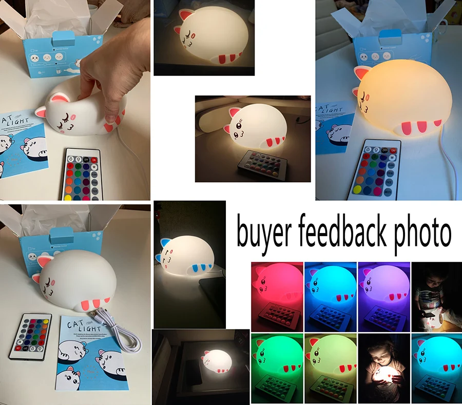 Особенности: -Восхитительный внешний вид: форма предназначена для милые кошки. Держите вас в хорошем настроении с мягким освещением; -Лампа, меняющая цвет: 7 цветов могут меняться, чтобы постепенно менять цвет. Благодаря мягкой силиконовой поверхности светильник выглядит мягким и теплым. Создает комфортную и расслабляющую атмосферу; -Долговечность: Держите свет включенным до 15 часов после полной зарядки. Быть вашим постоянным компаньоном всю ночь; -Портативный размер: легко носить с собой и установить на столе. -Размер кошки: 165*118*100 мм Посылка включает в себя: 1x светодиодный ночной Светильник