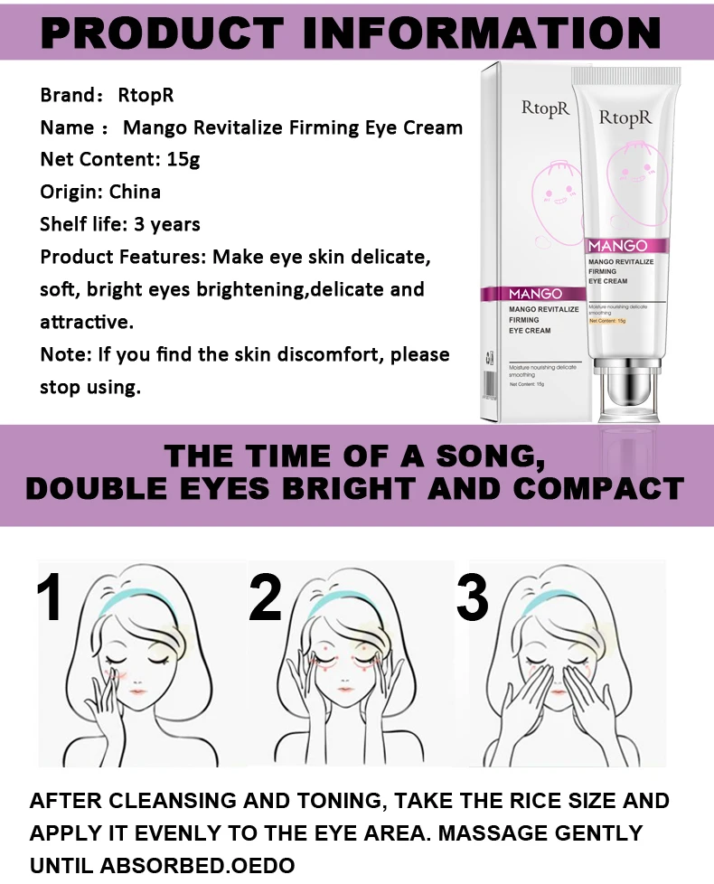 Мягкая влажная текстура, легко впитывает кожу, слой на слое проницаемость питает, придает коже глаз неделю, вода придает ласканию, помогает облегчить тонкие линии из-за отсутствия влажный сухой линии, гладкие вокруг глаз, делают кожу глаз нежной, мягкой, яркой, сияющей, нежной и привлекательной.