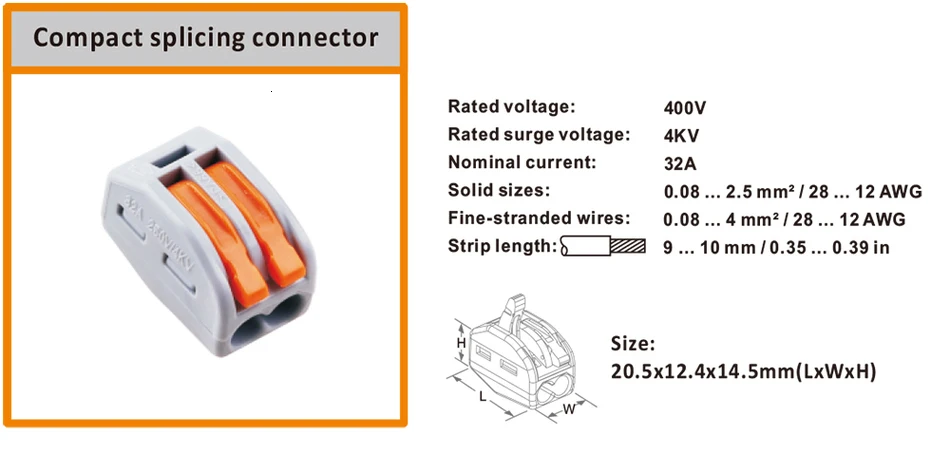 Сечение провода: 0,08 ~ 2.5mm2 (один жесткий провод), 0,08 ~ 4mm2 (мульти мягкий провод)
