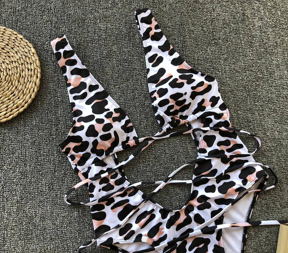 Женский купальник 2019 монокини сексуальный купальный костюм цельный леопардовый