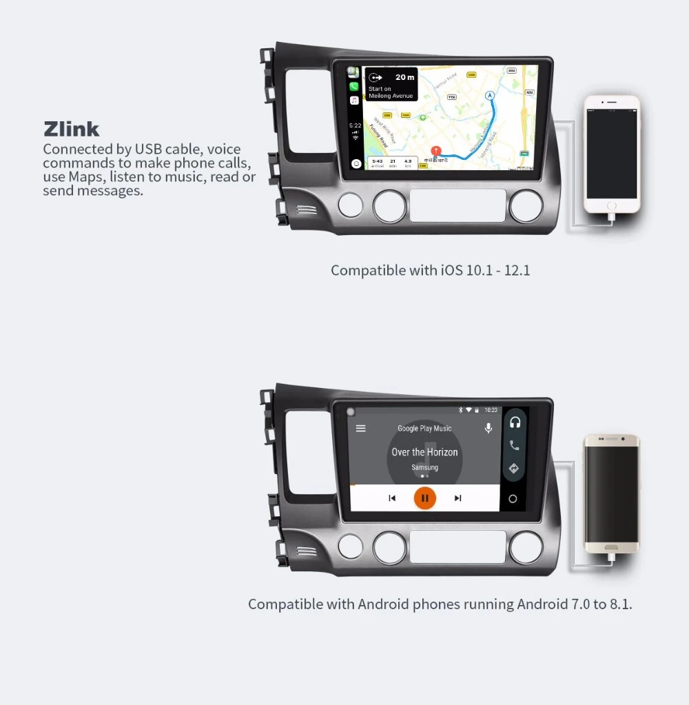 IPhone Zlink: ваш телефон может быть подключен к Головному Устройству через usb-кабель. С помощью голосовых команд можно сделать телефон, использовать карты, слушать музыку, читать или отправлять сообщения!
