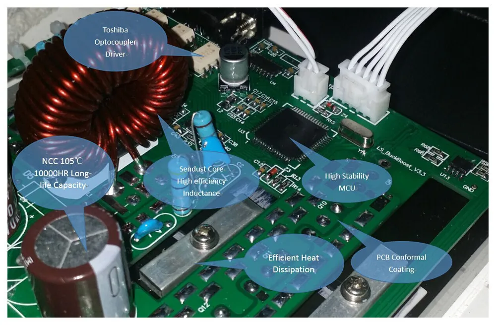 Что такое со слежением за максимальной точкой мощности Когда напряжение генератора ветра ниже, чем батарея, контроллер автоматически начинает увеличивать модуль, затем напряжение генератора ветра увеличивается до напряжения зарядки, это ускоренная подзарядка. Когда напряжение генератора ветра выше, чем батарея, для получения максимальной мощности, buck модуль контроллера будет начат, это buck зарядка.