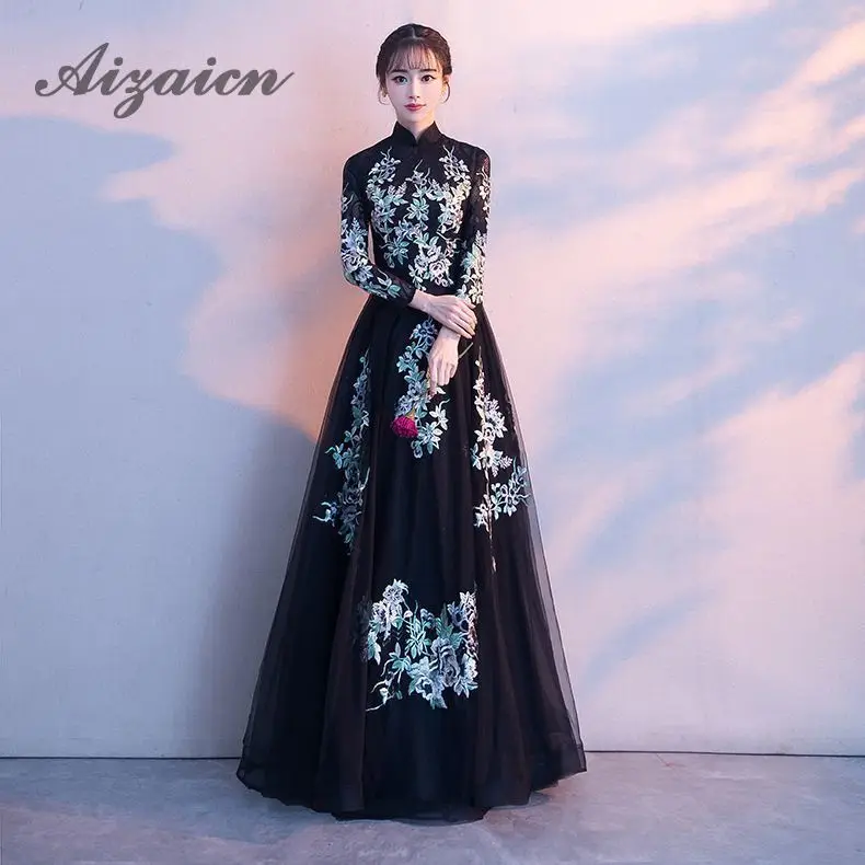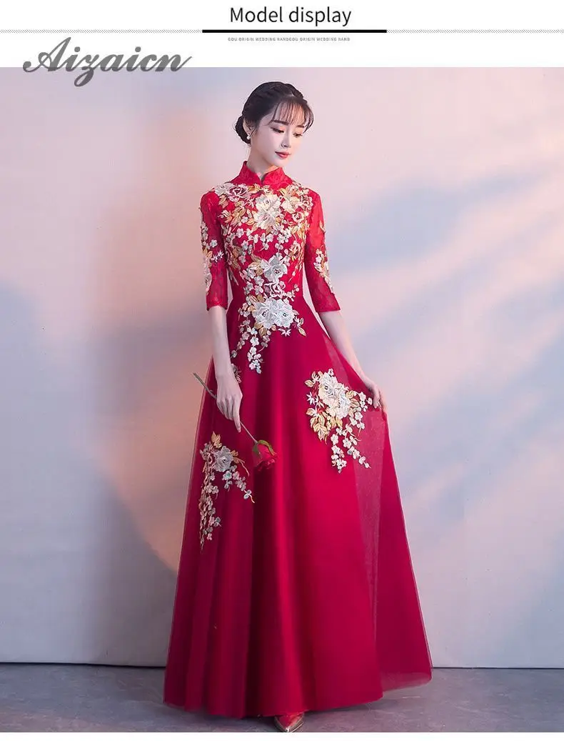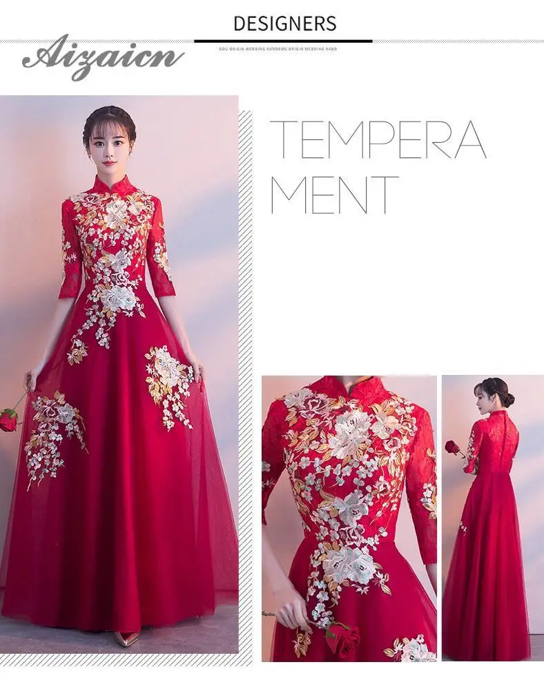 2017 дизайнерские красные с высоким разрезом парчовые золотые вышитые Китайские