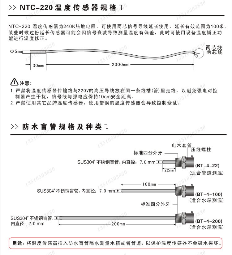 Данная модель не поставляется с глухой пробки; Температура срабатывания провода не используется в прямого контакта с водой, и они должны быть отделены от воды тела. Измерения температуры воды, чтобы быть универсальным воды глухая труба для того, чтобы отделить температура срабатывания линия от водоема! Если измерительный резервуар для воды, температура в водопроводную трубу: в том случае, если это не вода измерение тела, он не может использовать внешним глухая труба.
