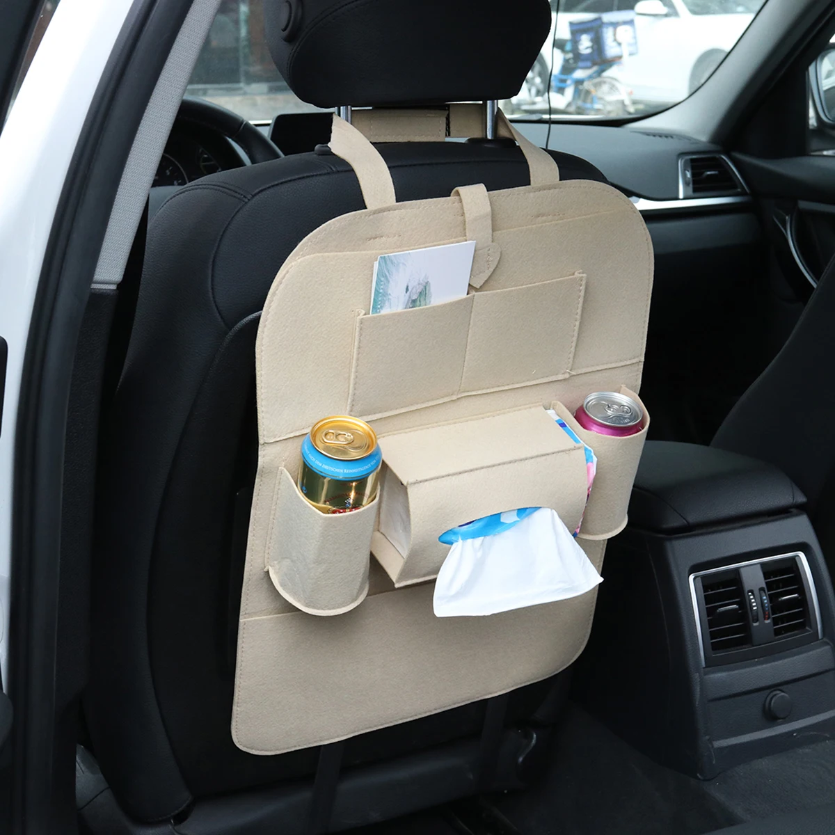 Важная особенность этого продукта-это большое пространство для хранения. Вы можете хранить в нем свои журналы, компакт-диск, салфетку, напитки. Сделанная из войлочного материала, эта сумка-Органайзер поставляется с достаточным количеством карманов и отсеков, чтобы помочь вам спрятать и уложить все, что нужно вашим пассажирам, чтобы сделать его в любой дорожной поездке в комфорте.
